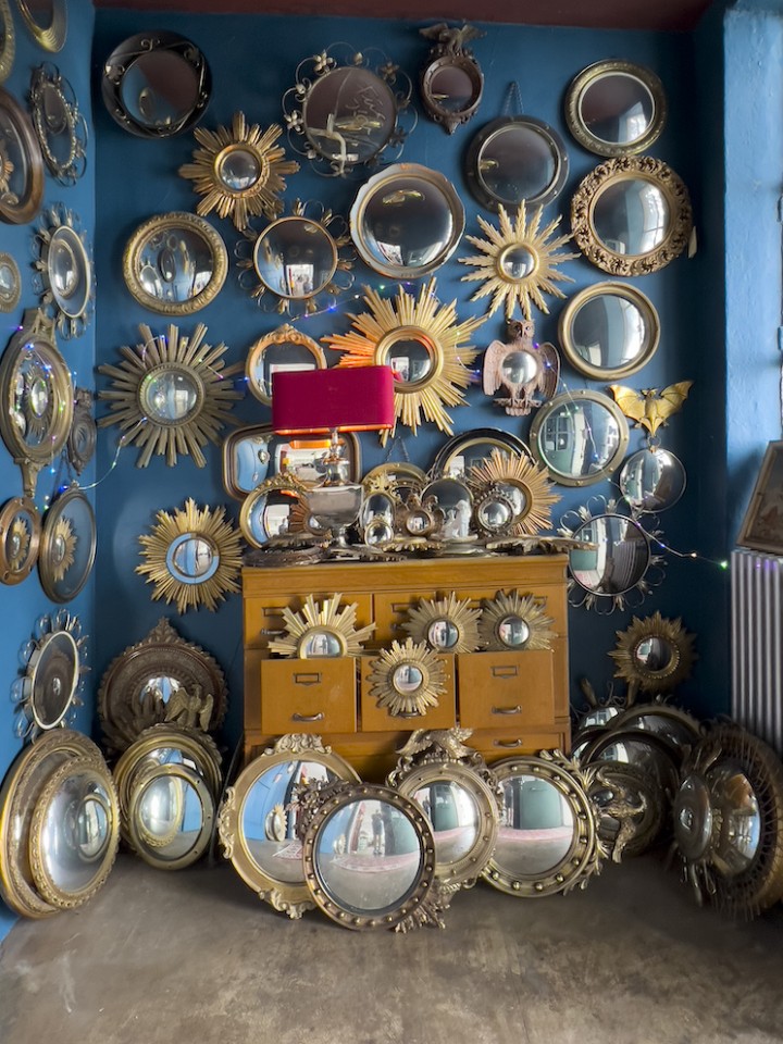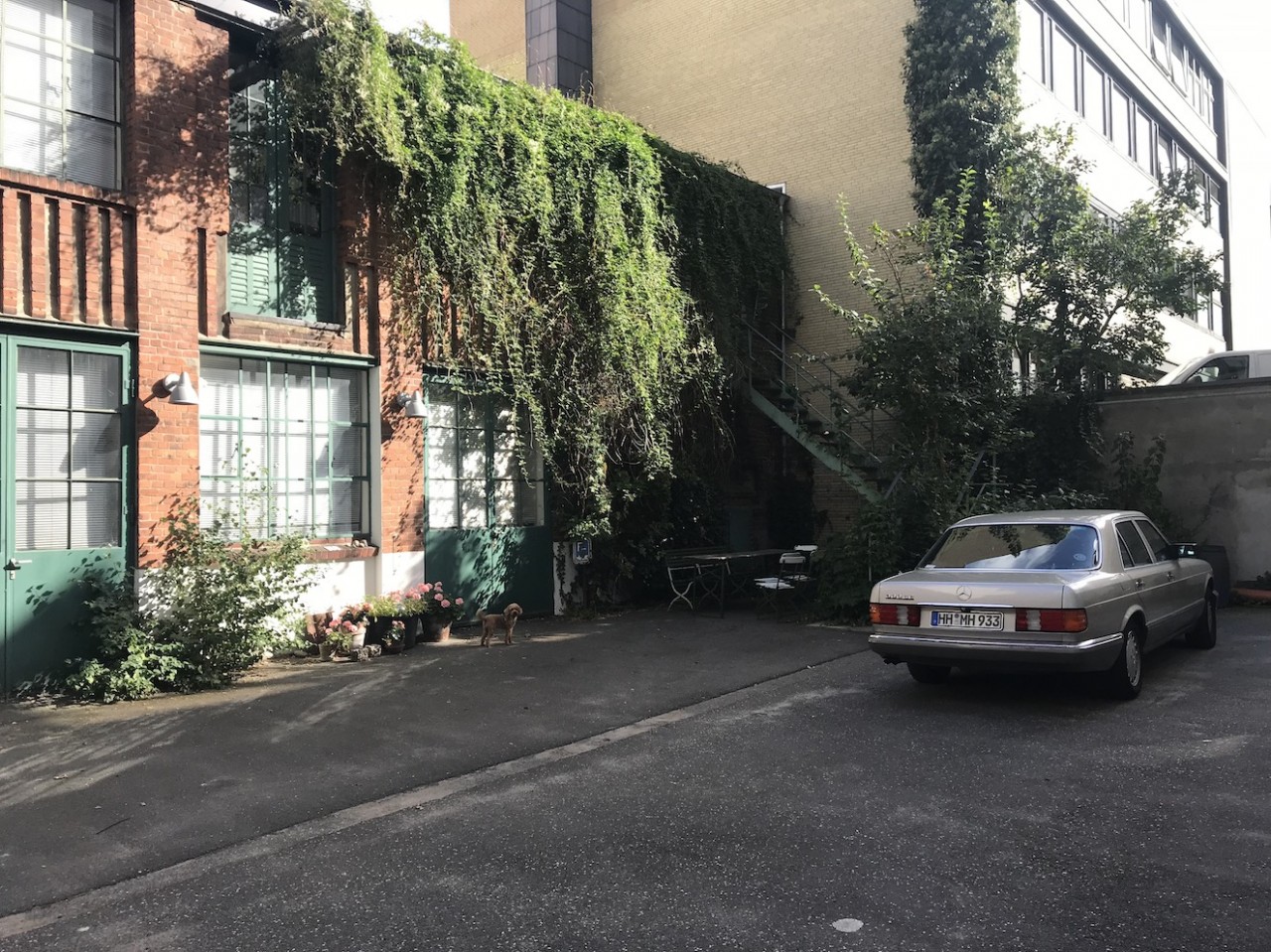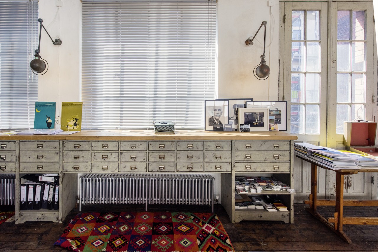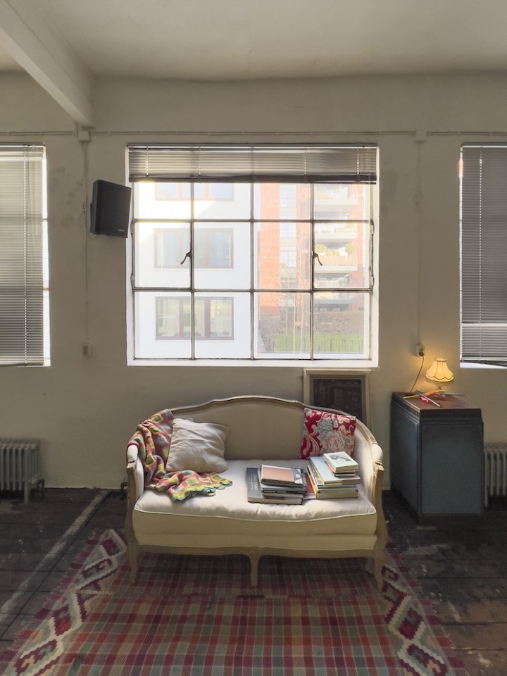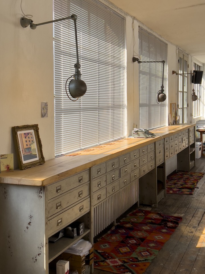 This spacious and luminous loft is situated next to a canal in the neighbourhood of Uhlenhorst in Hamburg. It features an aged wooden floor, high windows for ample day light, a beautiful wooden kitchen and a ping pong table for special meetings ! The carefully selected furniture creates a funky but well thought through ambience. Another highlight is a corner with a huge collection of antique, golden framed mirrors. The loft can be rented together with the, equally unique, lower floor.