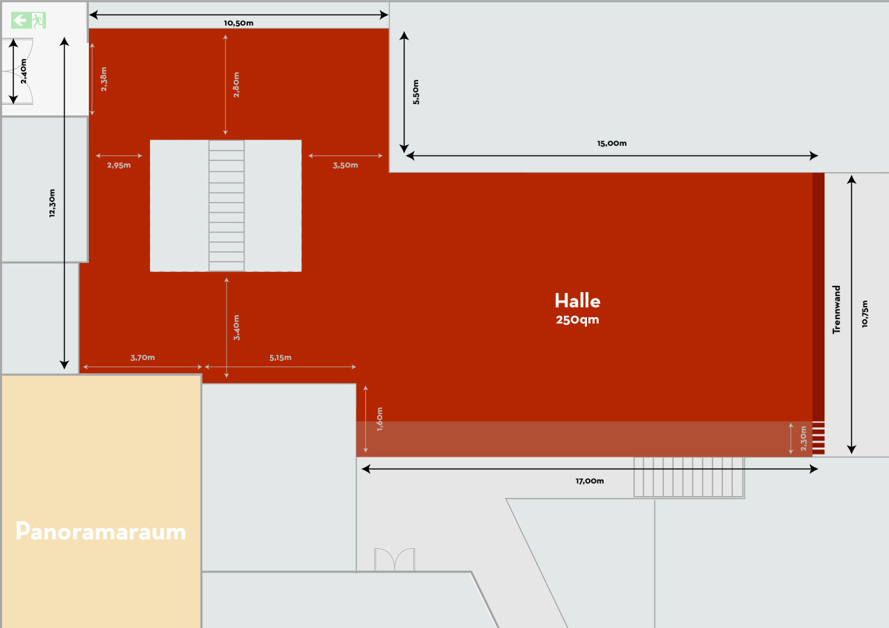 • Up to 160qm floor space with 8.5m width and 19m length