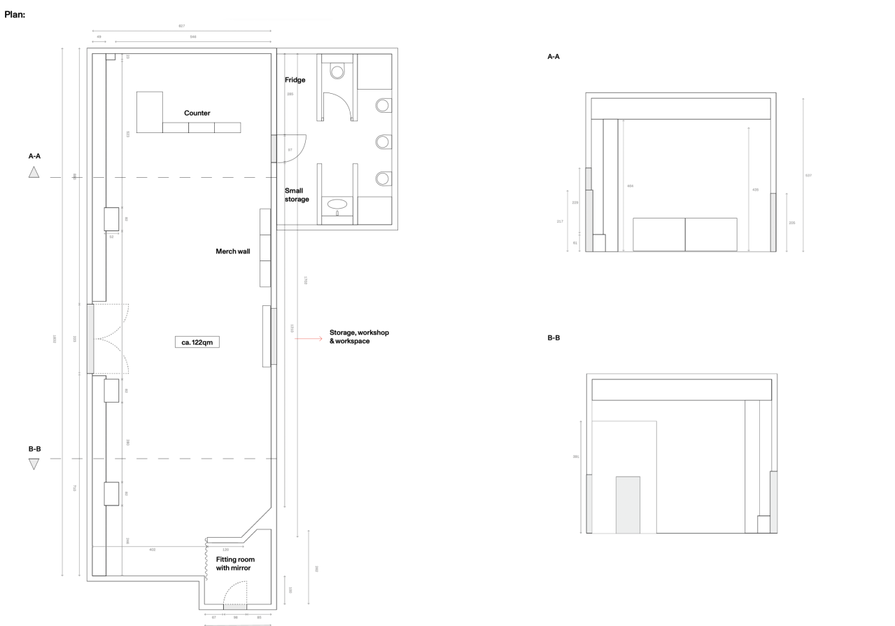 Available for short- or long-term rental, the space can be used as part of a collaborative concept or booked independently as an empty venue. On request, additional amenities are available, including approximately 45 square meters of storage space, a compact workshop, and several workstations—making it well-suited for both production and presentation.