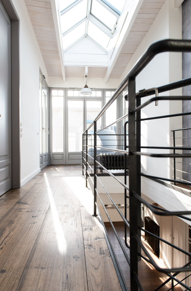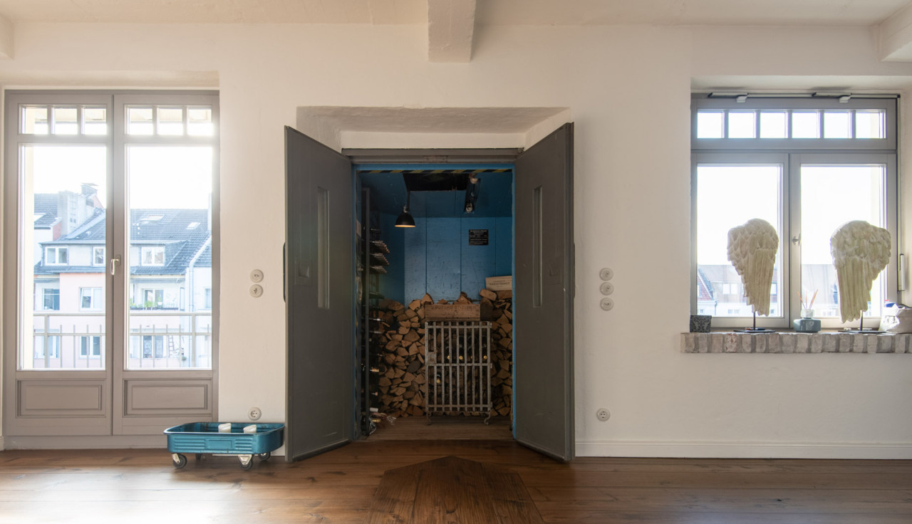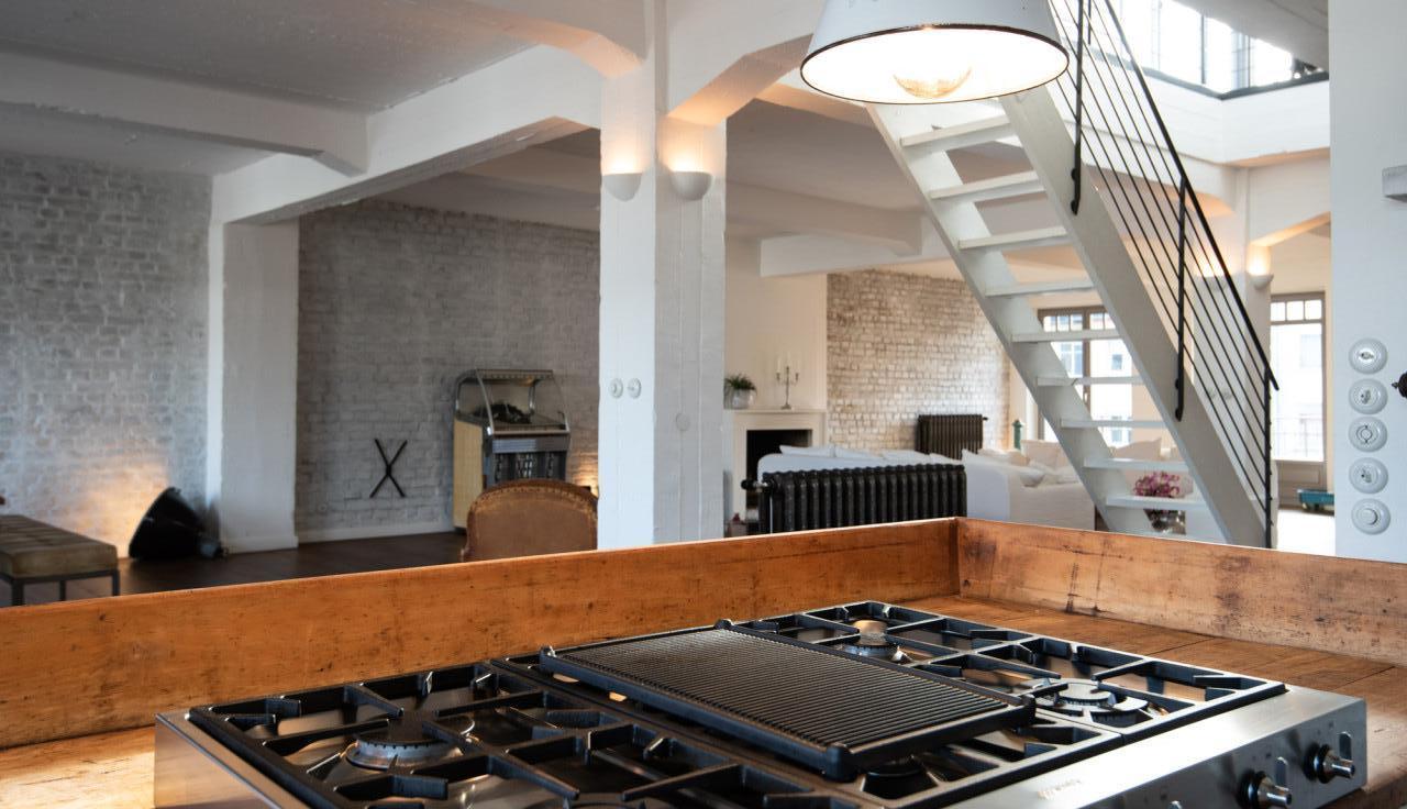 This industrial rooftop loft in Düsseldorf offers a spacious and light-filled setting, perfect for film, photo, and event productions. The loft features an open-plan layout with an industrial aesthetic, highlighted by exposed beams, large skylights, and a mix of modern and raw materials. A stylish open kitchen, a striking staircase, and a private rooftop terrace add versatility to the space. With panoramic city views and a blend of natural and urban elements, this location provides a unique backdrop for creative projects. Ideal for productions seeking a contemporary yet edgy atmosphere.