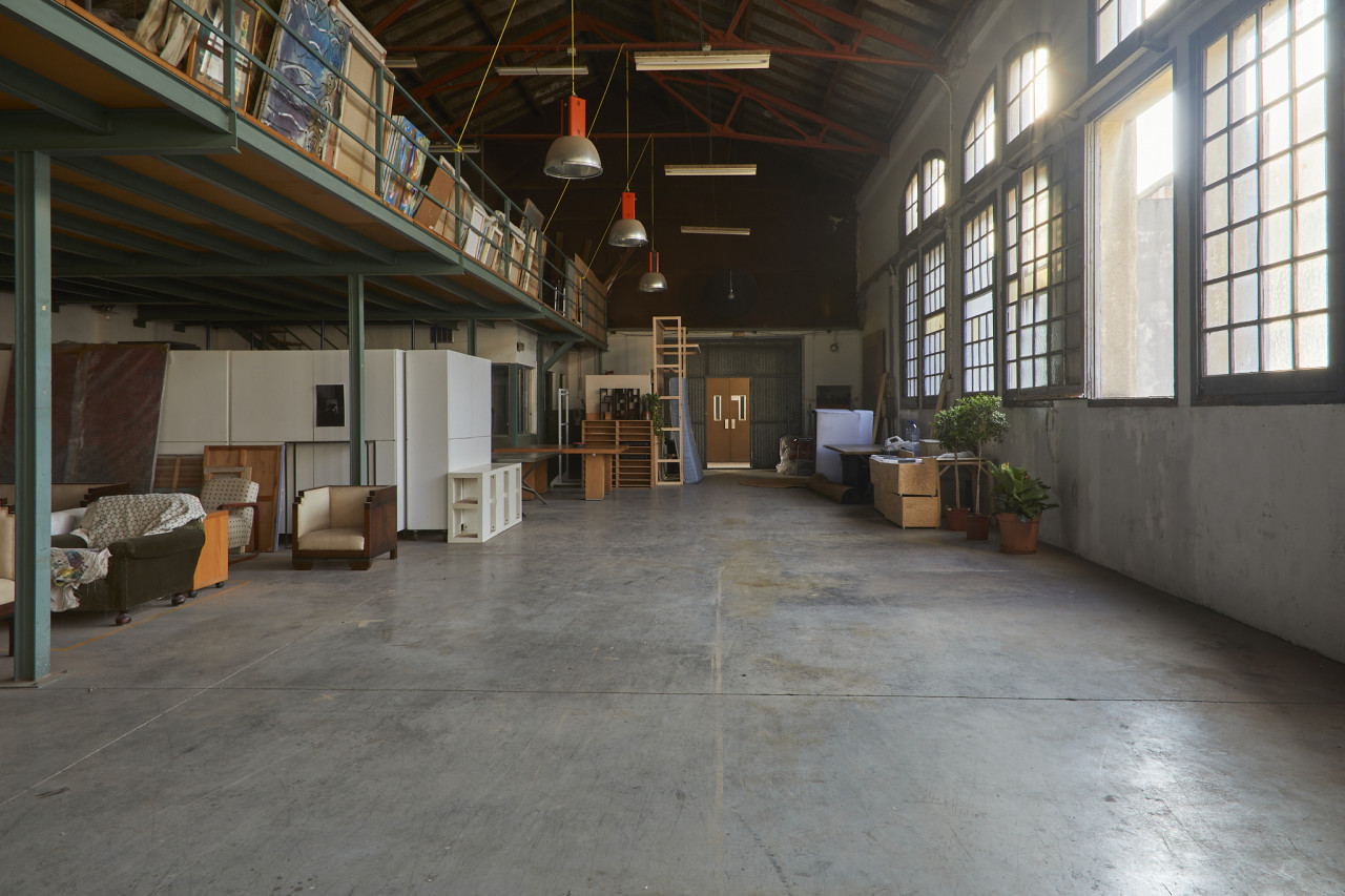 This industrial loft offers an expansive open-plan setting defined by soaring ceilings, exposed beams, and a long wall of factory-style windows that flood the space with natural light throughout the day. Its raw, historic character is preserved in the textured walls, patinated frames, and original concrete floors, creating an authentic warehouse atmosphere ideal for filming, photography, exhibitions, or creative production. The vast central hall allows for flexible layouts, from large-scale sets to intimate staged corners, while the mezzanine level provides additional storage or working space without interrupting the visual flow.