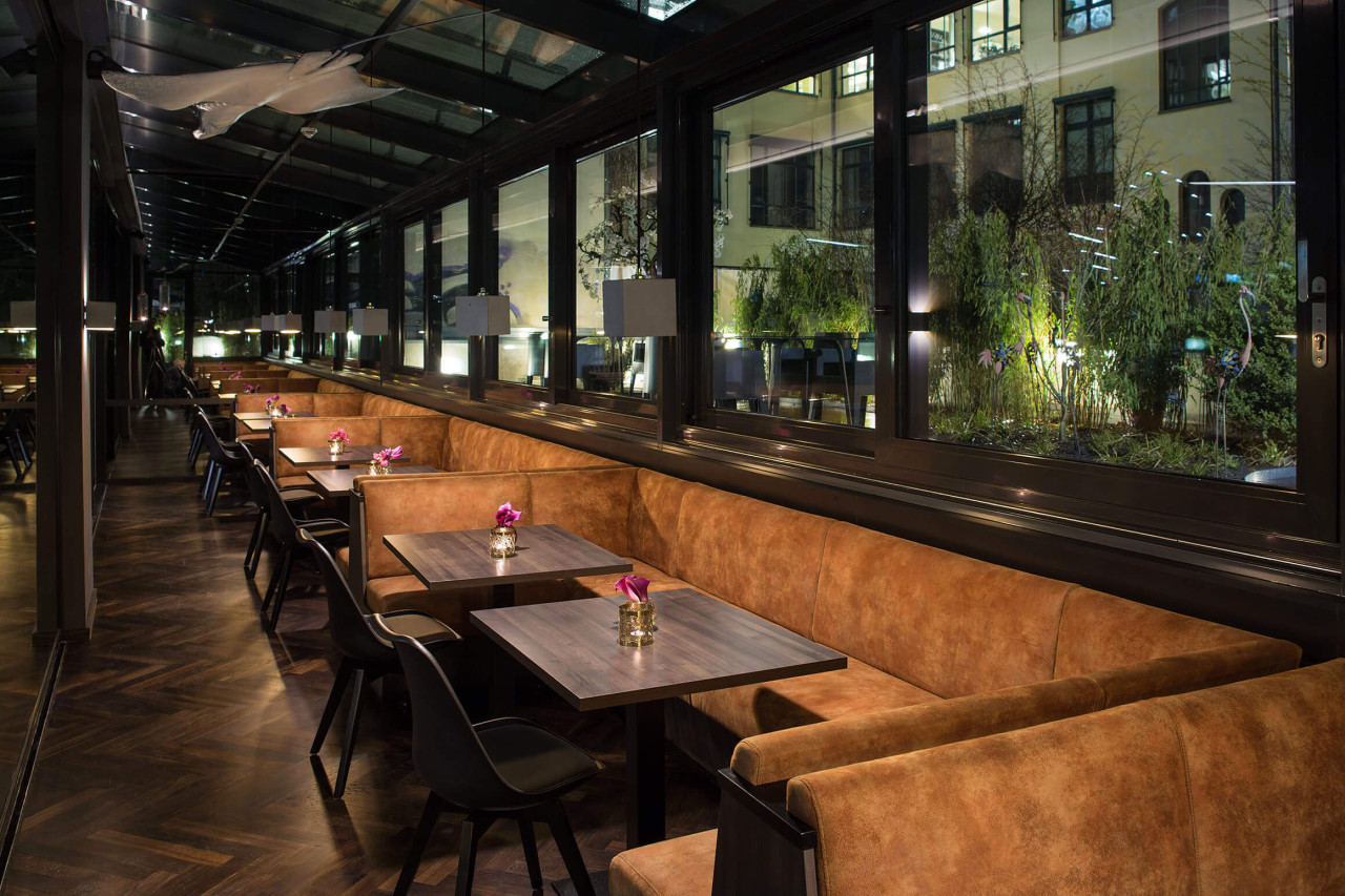 Totally different from any breakfast room you’d find in any other hotel around the world, this Hotel's breakfast area is a true experience. The restaurant consists of an elegant lounge and glossy dining area – every inch a showcase for interior design. Furniture in earth tones, gold and copper accessories and a dreamy look in the glass conservatory will pique your imagination. Falling for the this Lush Breakfast Area? Events and photoshoots of all kinds can be held here. During the day and even at night.