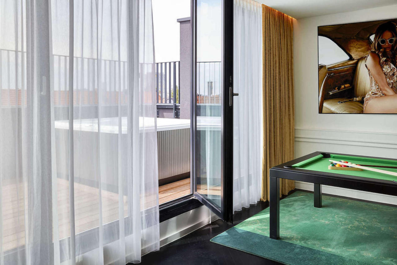Throughout the hotel, there are various backdrops reminiscing of a 60’s and 70’s interior design. The restaurant together with the Bar offers a modern, cosmopolitan interior design backdrop. The Red Room with its geometrical design patterns and deep red colour scheme sets a very unique mood. A large movie screen and a dipping pool are part of our spa area and are ideal for screenings or party scenes.