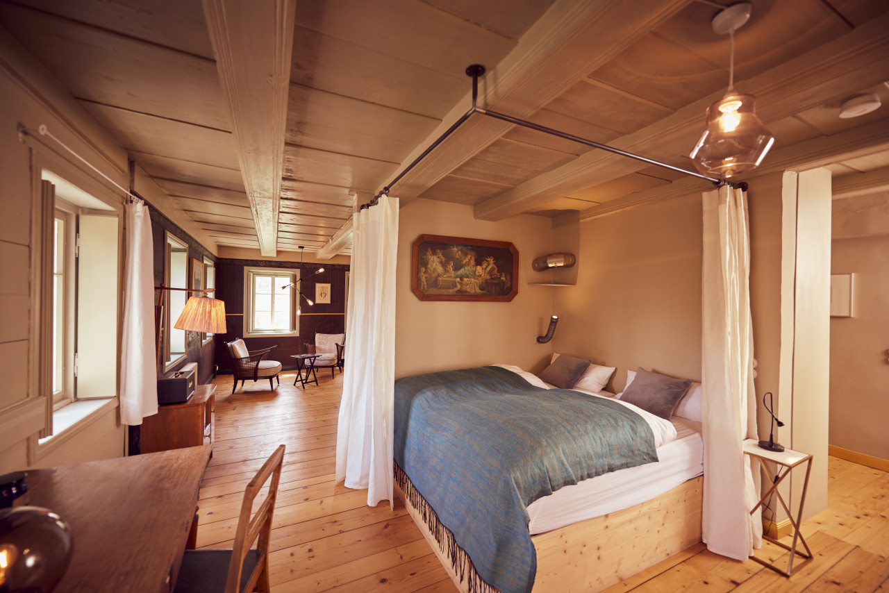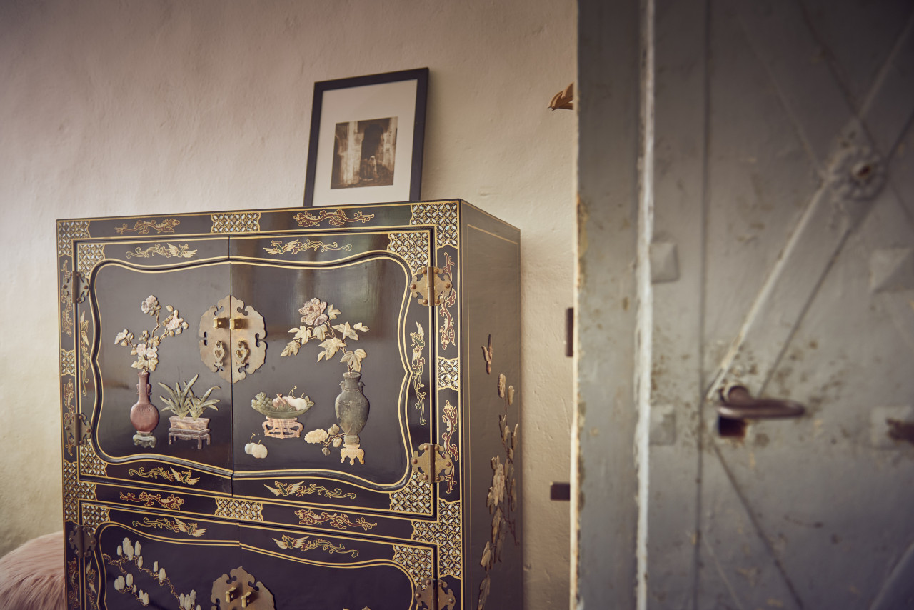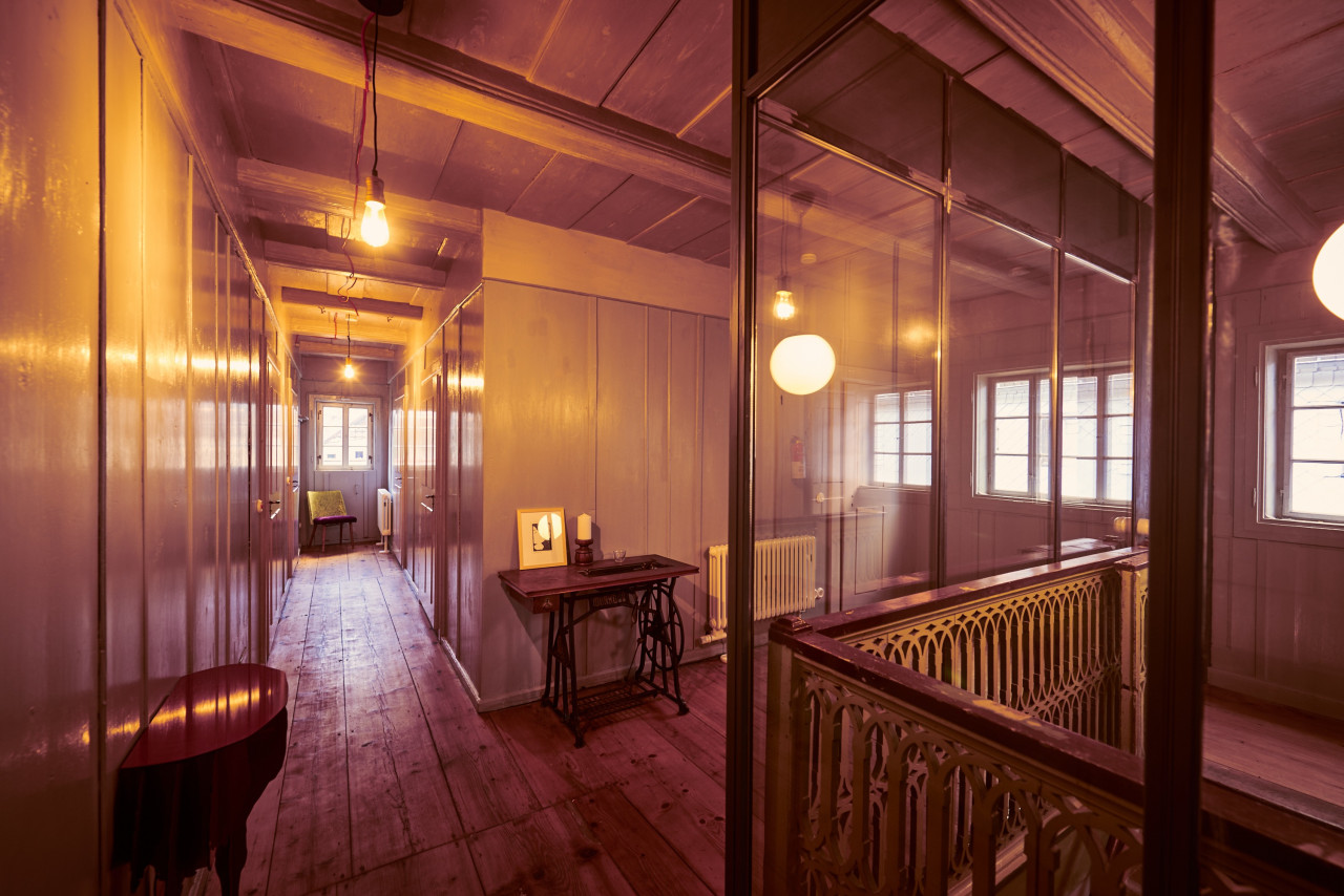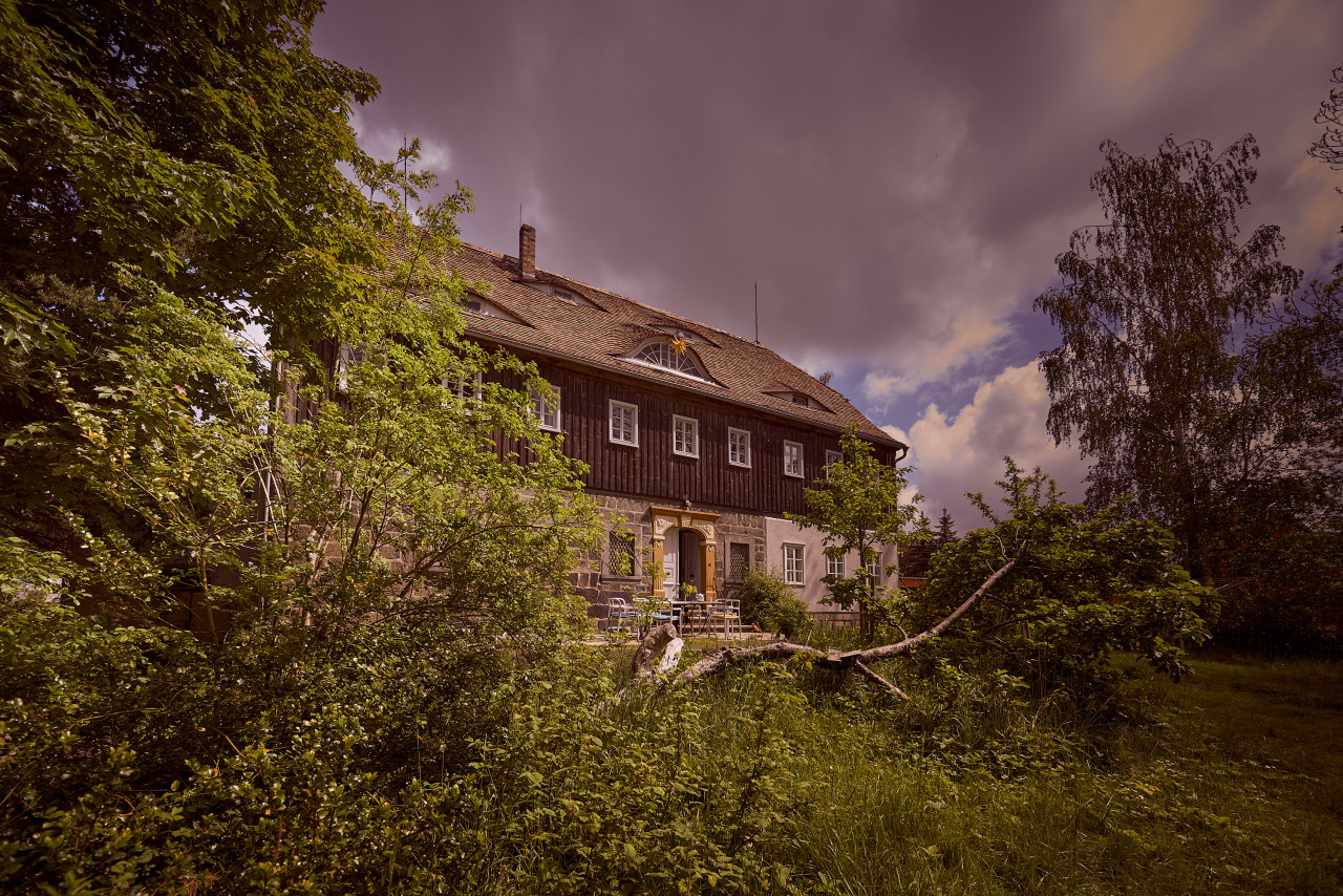 This location in Oberlausitz is a historic "Umgebindehaus" in the region where Germany, Poland, and the Czech Republic meet. This listed building, built in 1831 by a cloth merchant, has been extensively restored to offer 260 sqm of unique ambiance. This House blends Baroque, Classicism, and Art Deco elements with an eclectic mix of antique, 60s, and contemporary furnishings. Despite historical features like vaulted ceilings, wooden beams, and murals, the house feels lively and modern. A spacious kitchen and dining room accommodate lively gatherings, while the library, five bedrooms, and a sauna offer relaxation. The garden with old fruit trees and the terrace in the courtyard add to the charm.