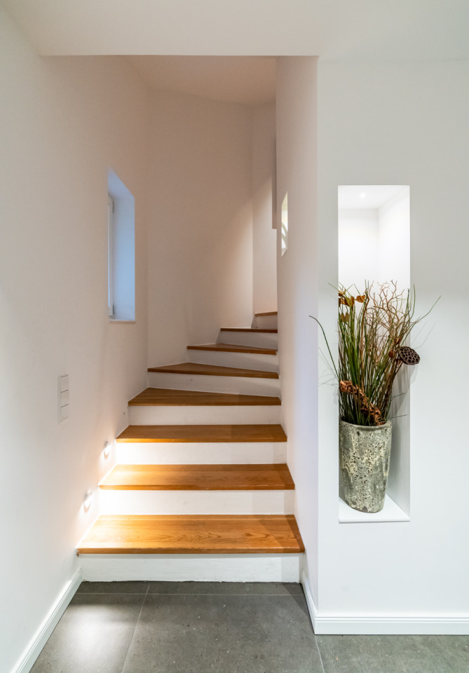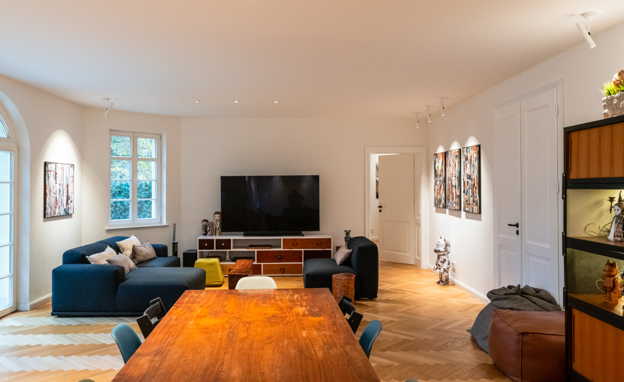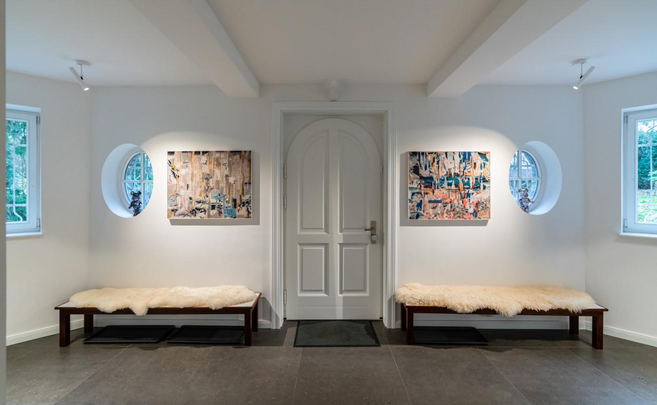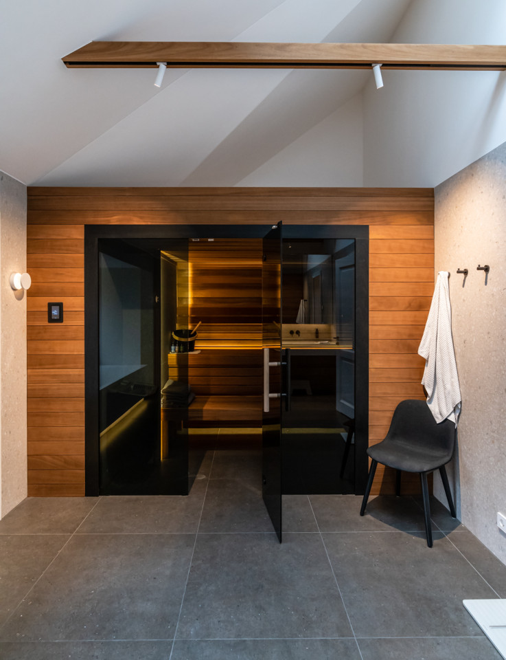 Furthermore, two home offices, three children's rooms and three bathrooms, including a sauna, a bathtub, a big shower and a guest wc. Two of the toilets are equipped with electric toilets from Japan with seat heating, hairdryer and bidet. This house is like a bed of roses...