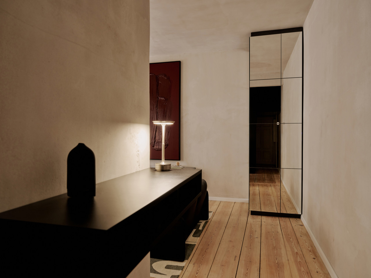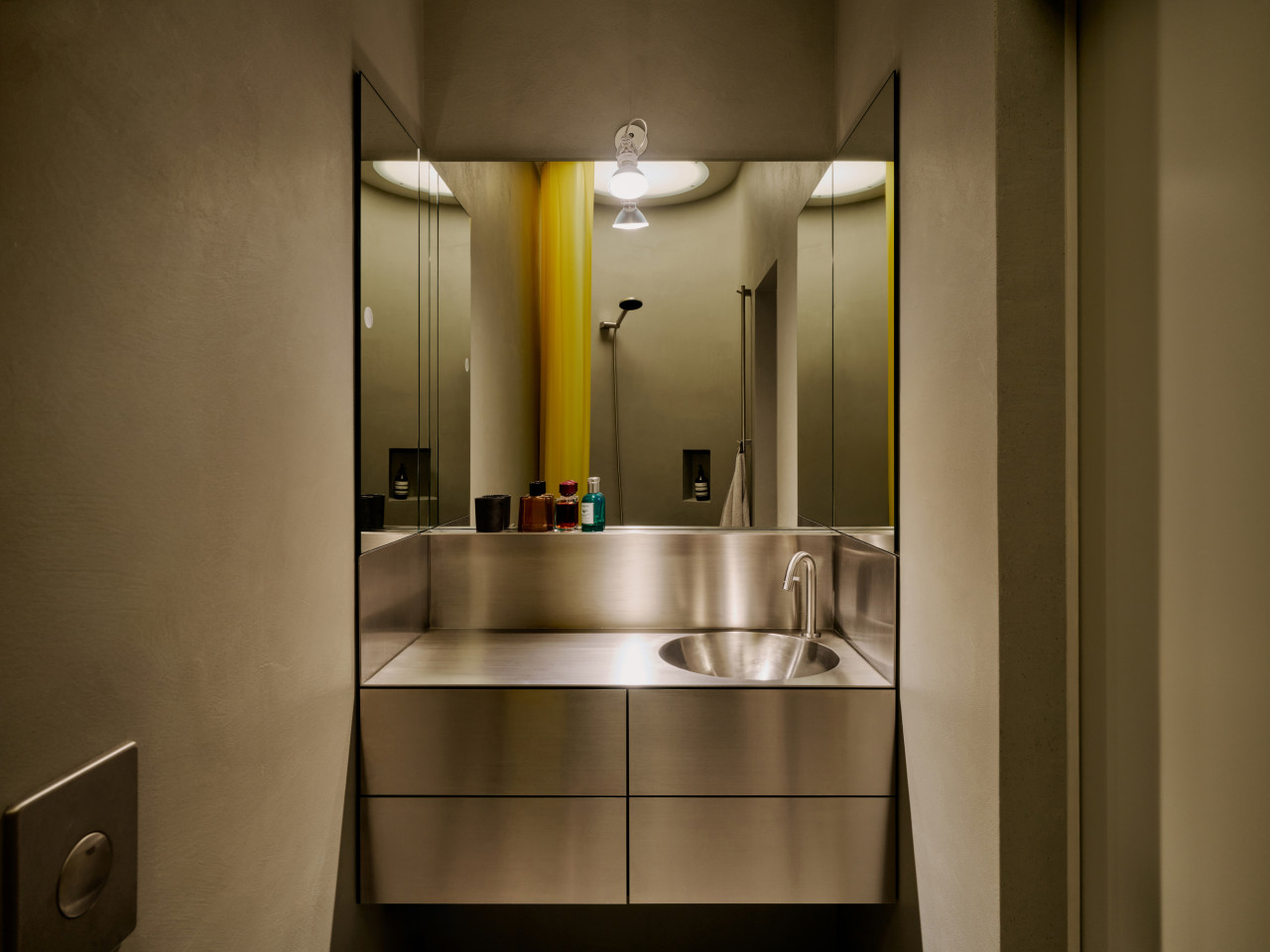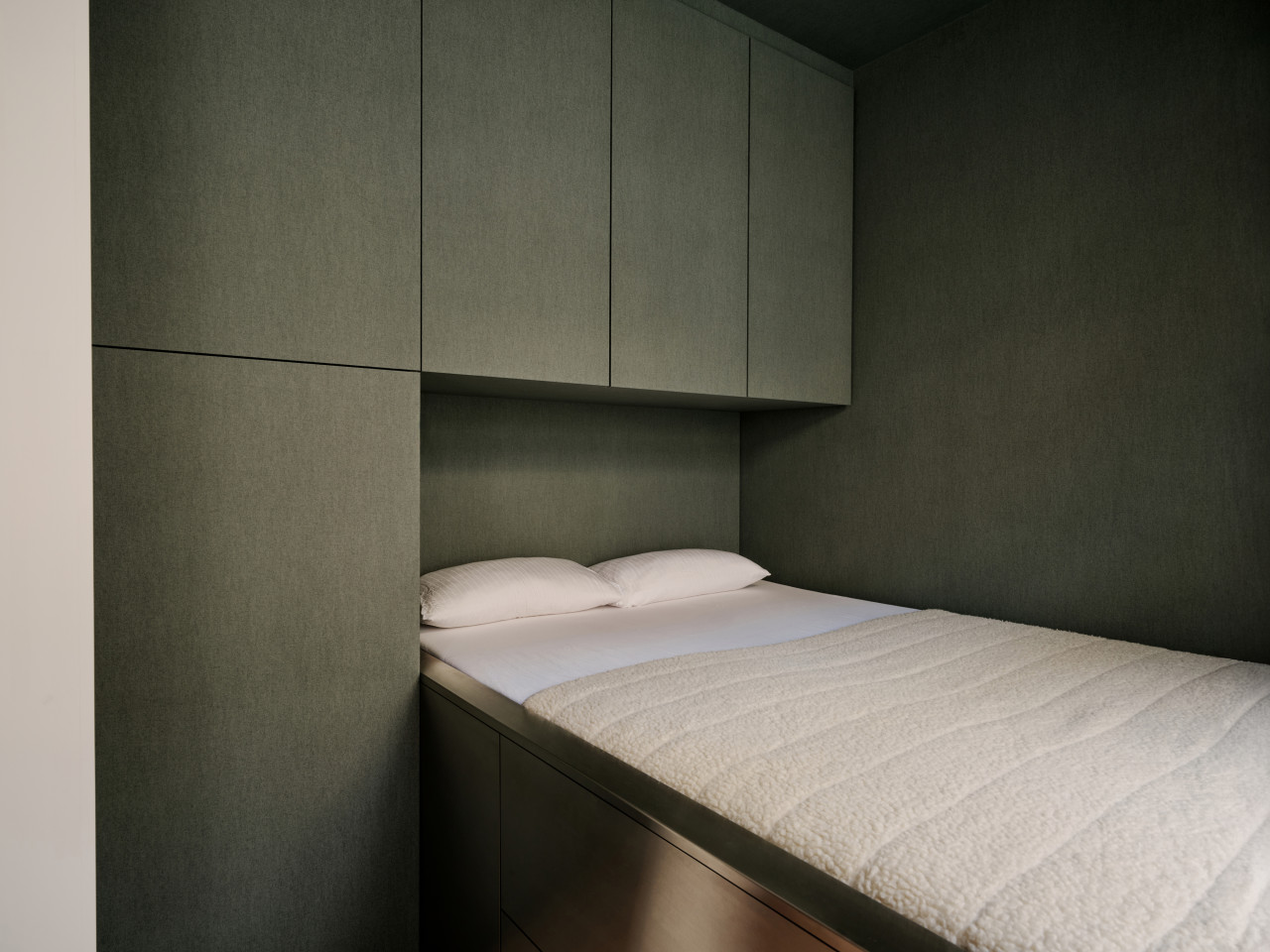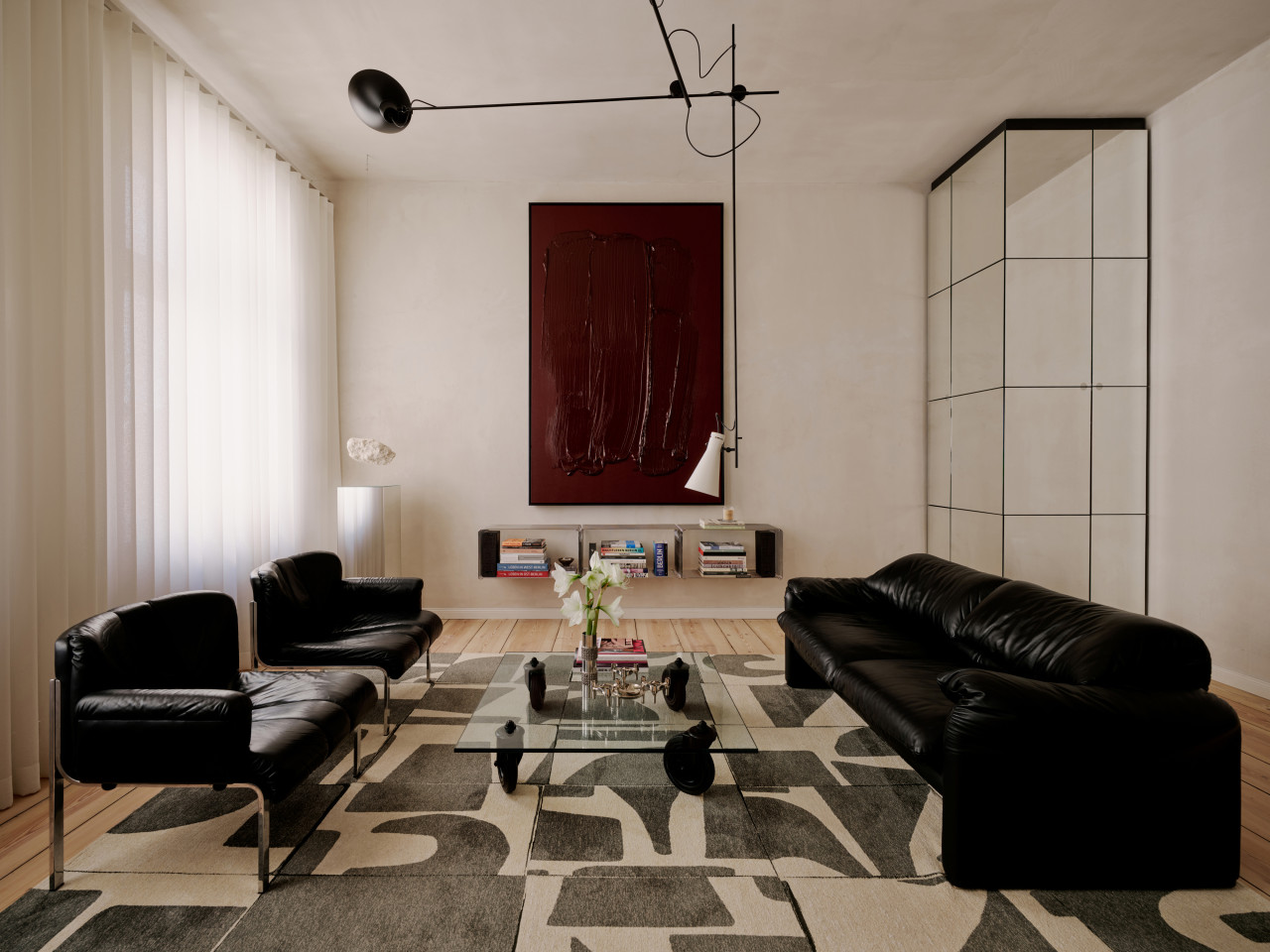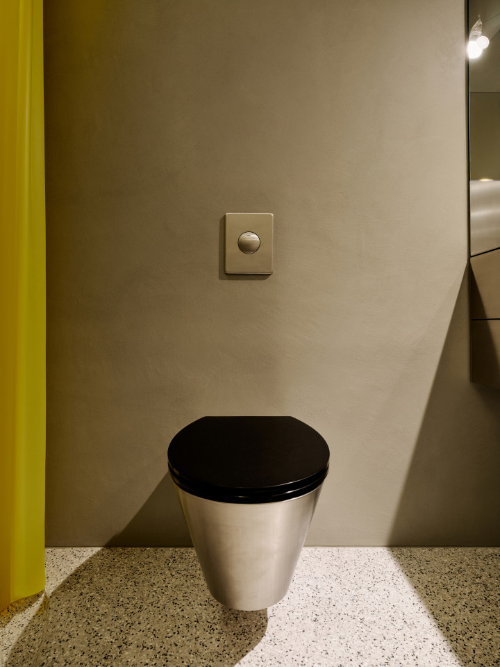 bright open plan apartment 49sqm high ceilings concrete walls modern fittings & furniture