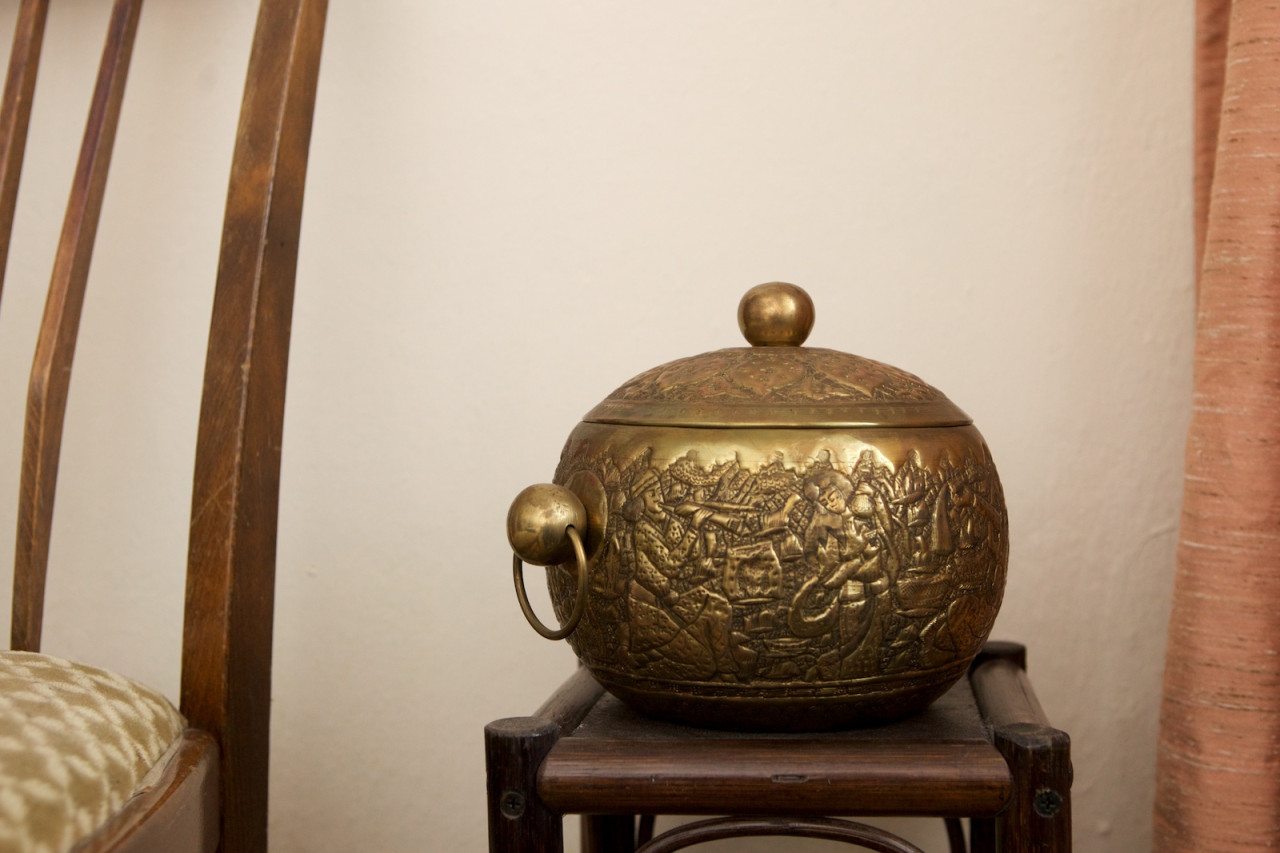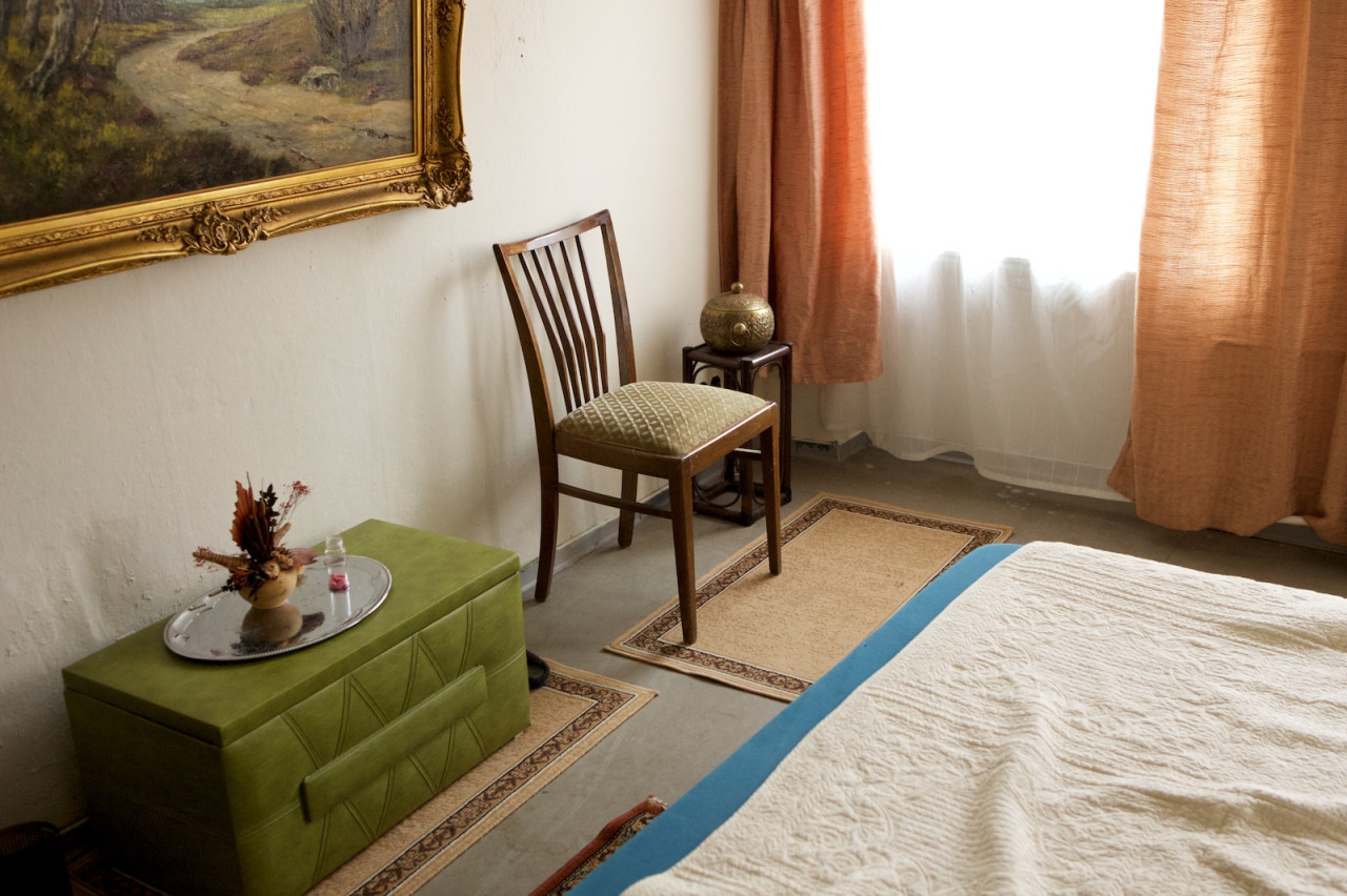 Located on the ground floor, our fully furnished pensioner's flat consists of a living room, bedroom, bathroom and small kitchen as well as a previously unused room that could be freely designed. The furnishings are old-fashioned and rather plain, sometimes a little worn.