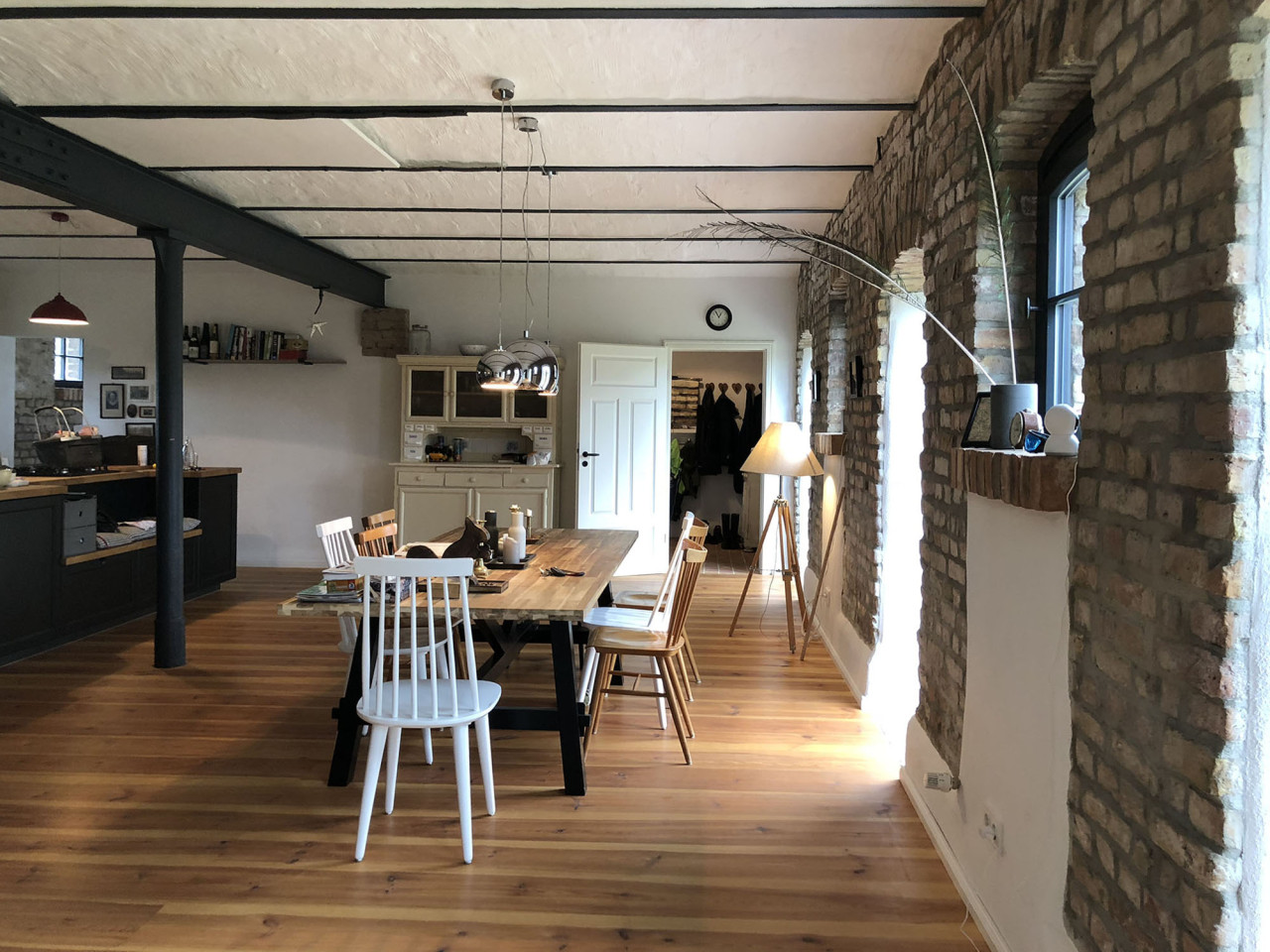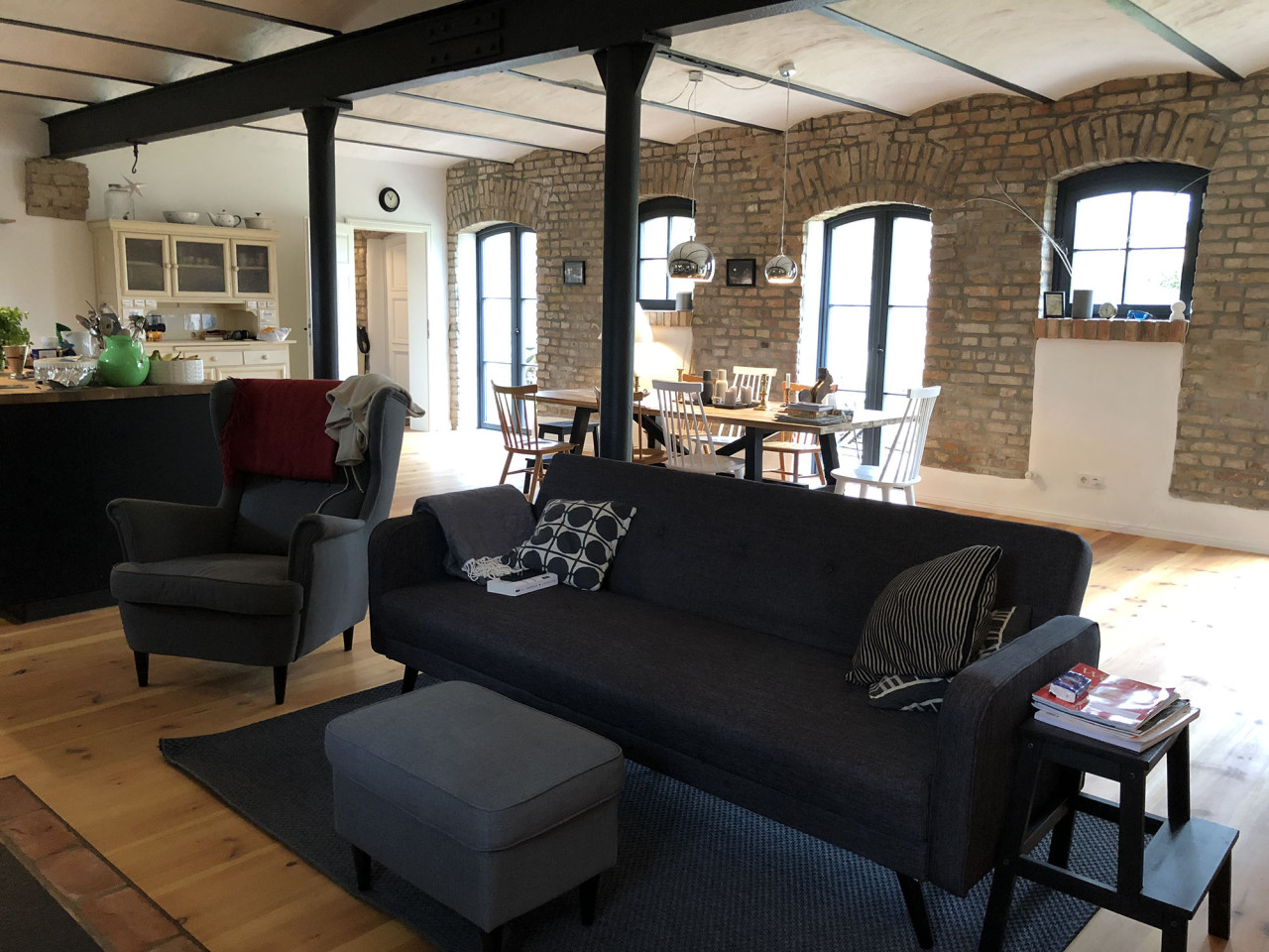 Just one hour from Berlin Alexanderplatz, this versatile countryside property offers multiple shooting options in a quiet, authentic village setting. The main house is a former stable converted into a residential home, retaining rustic character with a lived-in atmosphere. Next to it stands a large renovated barn with a raw concrete floor and no interior build-out, ideal as a flexible production space or backdrop.