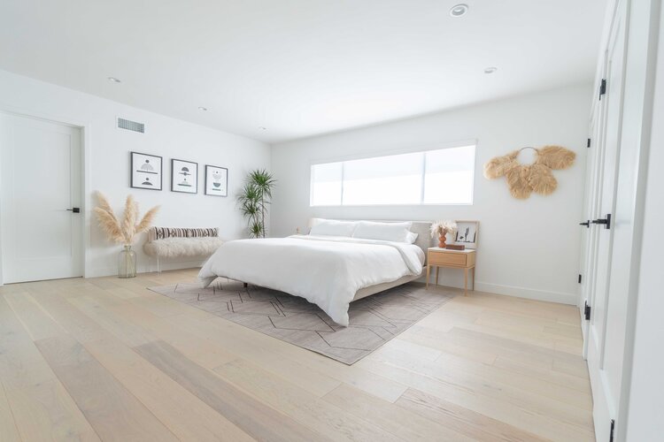 Large zen-inspired master bedroom has a king-size bed with a sliding door opening to the backyard. Guest bedroom has a queen-size bed and gorgeous natural light. The third bedroom is perfect for holding talent, hair/make-up/wardrobe, and storing equipment, and includes a rolling rack, seamless and a commercial steamer. It can also be converted any room as it is empty. There is also a fully staged office complete with a pink sofa