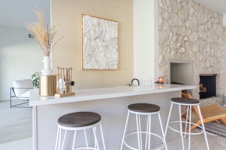3,100 square foot designer home with mid-century modern, bohemian, and Swedish, Scandinavian, décor. The home completely updated and impeccably furnished. With two spacious living rooms with a dual fire place, dining room, a standalone bar and open chef’s kitchen all within an open floor plan.