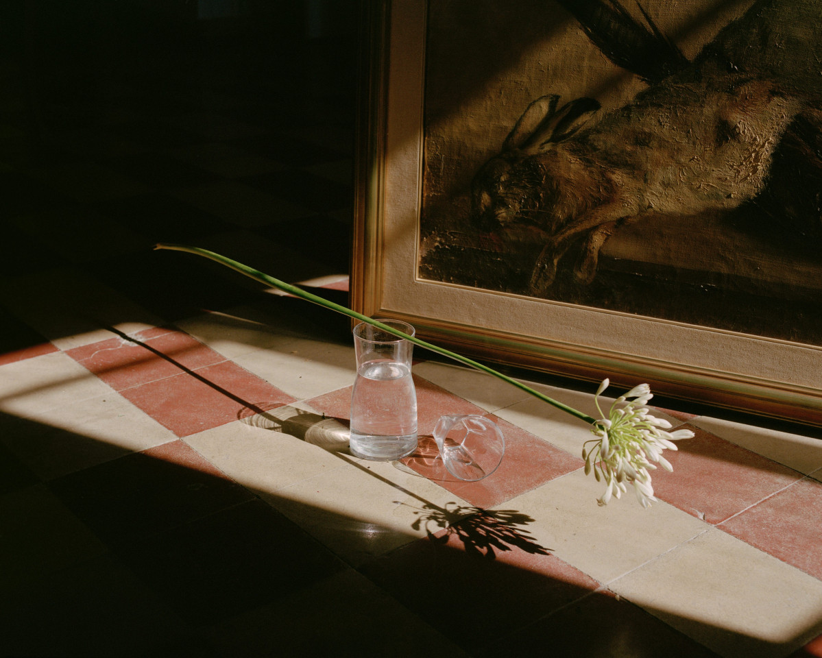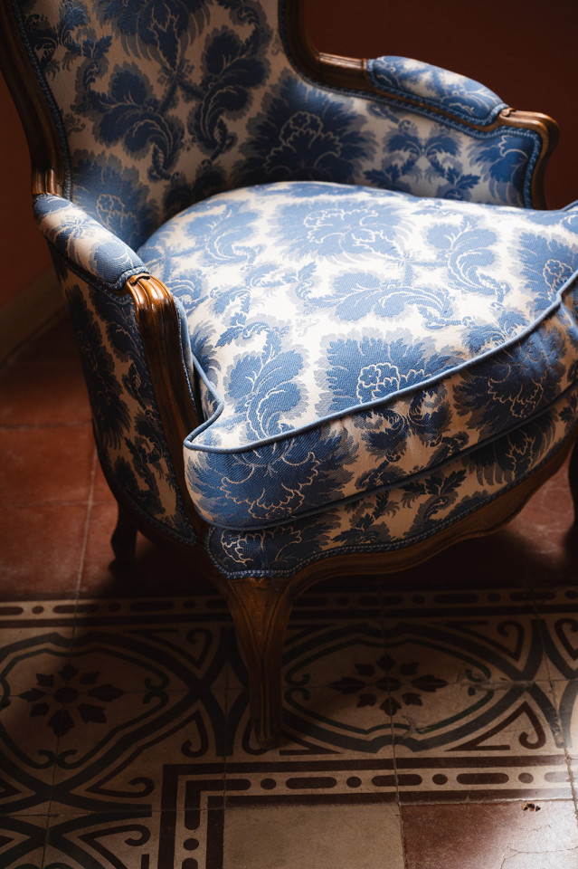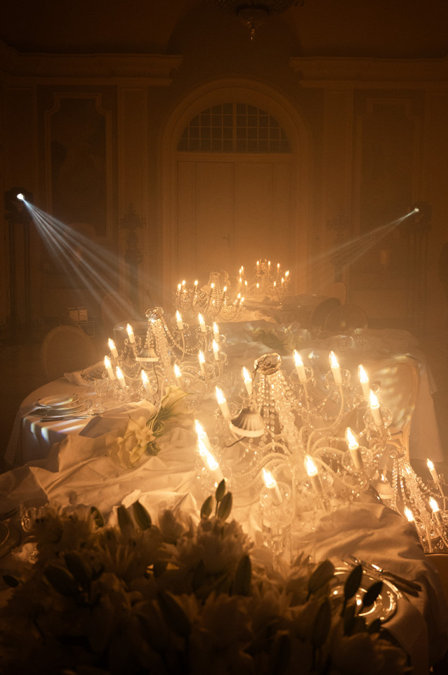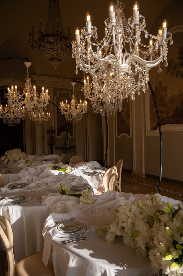 The wide windows and refined chandeliers create a beautiful play of light and shadows with the sunlight on the antique tile pavements, adding visual rhythm and layers of depth to pictures and film.
