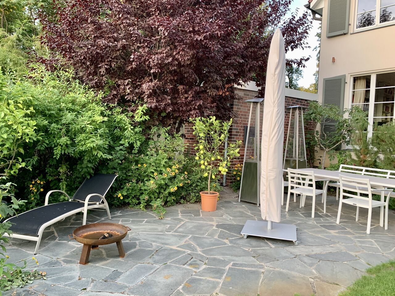 The home's garden is a true oasis, with a heated swimming pool, a beautifully landscaped terrace, and plenty of mature trees and shrubs. The garden is perfect for outdoor shoots, and the privacy of the property makes it ideal for filming. It is located in a quiet, residential area, making it easy for your crew to get to and from the shoot.