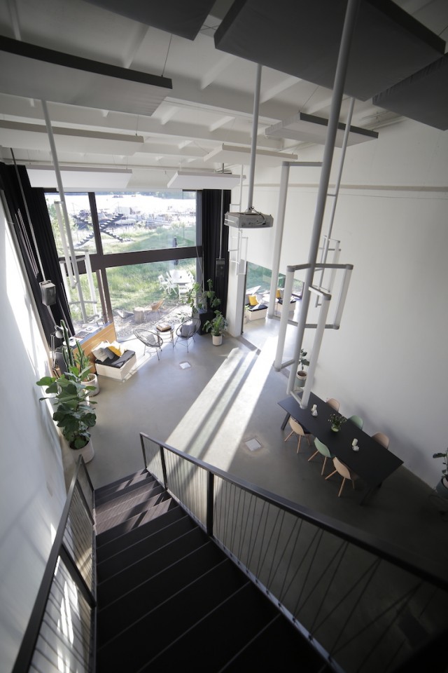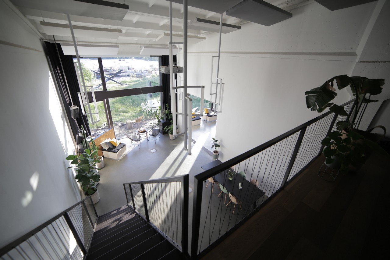 250sqm, light flooding through large windows, a contemporary design concept. Studio C is the ideal location for your next event, showroom, film or photo production.We have lots of space, high ceilings, your equipment can roll in here barrier-free. Big windows are nice but you need artificial lighting? No problem, we'll close the curtains.In addition we have a professional sound system, DJ booth, beamer and screen, high tension current outlets, back office for the production team and a mezzanine for VIP guests and models or hair & make up team.There is also the option of separating the studios into two spaces. Our big bar is inviting as well as the open kitchen that works well in front of the camera and behind the scenes and we also offer catering of all styles.Take a break while overlooking the Spree? Studio C is embedded in the natural landscape of Rummelsburger Bucht, within the Spreestudio grounds.