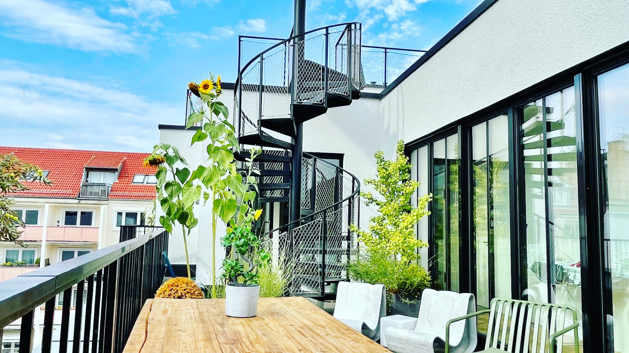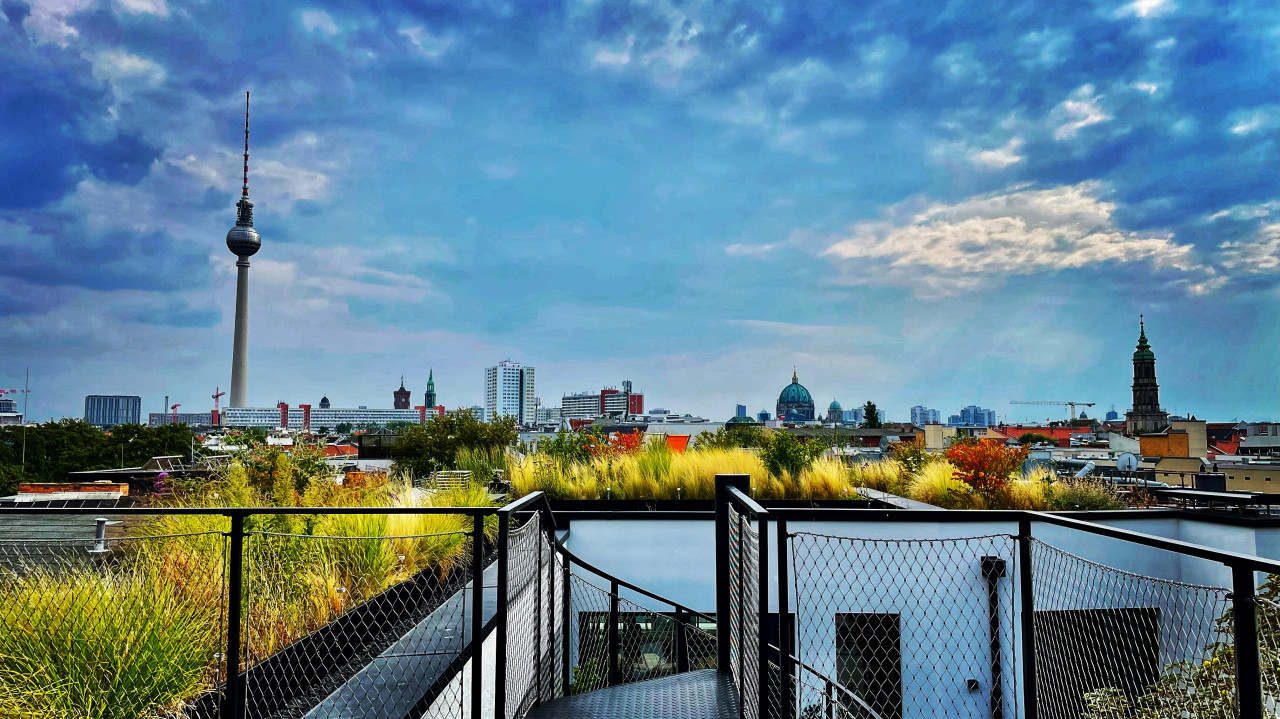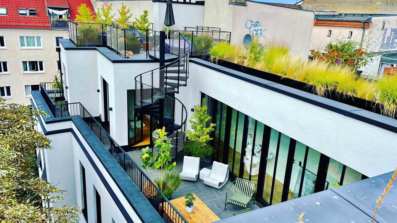 Heaven over Berlin: The airy balcony and the nearly surrounding rooftop terrace make the penthouse a unique place that combines absolute urbanity with secluded tranquility.