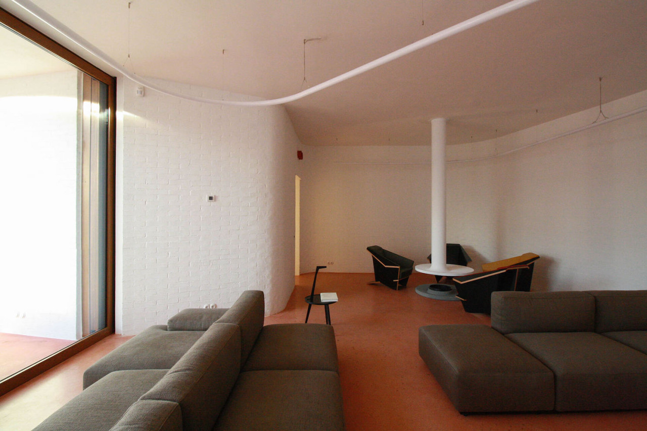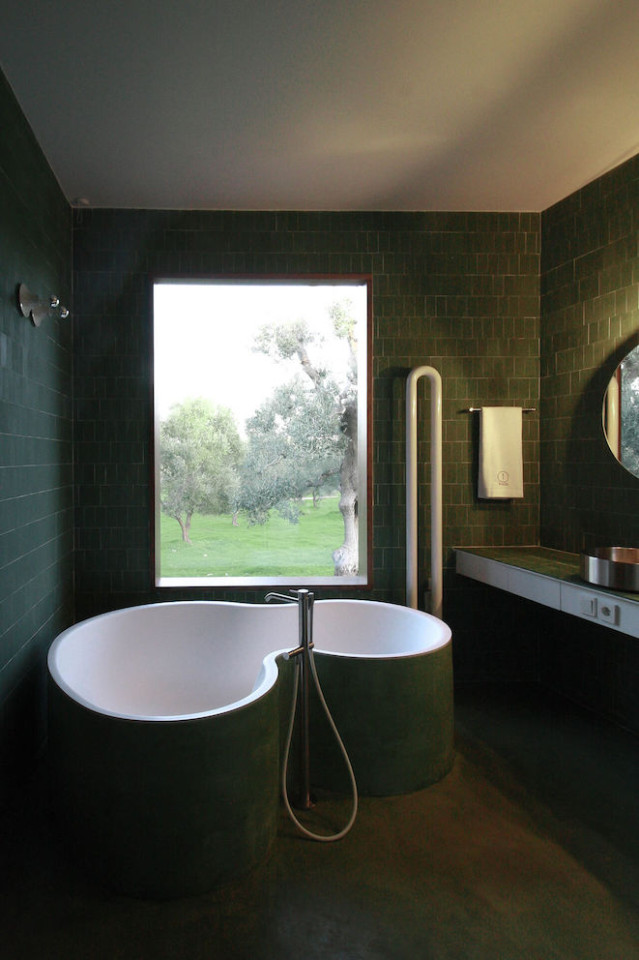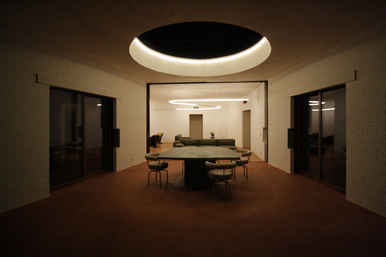 Experience the pinnacle of modern luxury and serene living with this stunning residence, nestled in a lush, verdant setting. Inside, the property boasts a series of beautifully designed spaces that promote both tranquility and social interaction. The array of modern, minimalist interiors, such as the dining area with a circular skylight, and the sleek kitchen overlooking the gentle green landscape, are complemented by cutting-edge design features including round ceiling openings and large windows that invite natural light and nature views inside. Elegant, green tiled bathrooms with views of peaceful gardens offer a spa-like experience from the comfort of home.