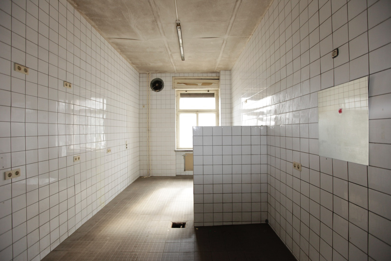 This room has been used as a motif for numerous music videos or as a hospital room. The former kitchen of a pub is tiled with white tiles up to the ceiling. This creates a slightly morbid, surrealistic atmosphere.
