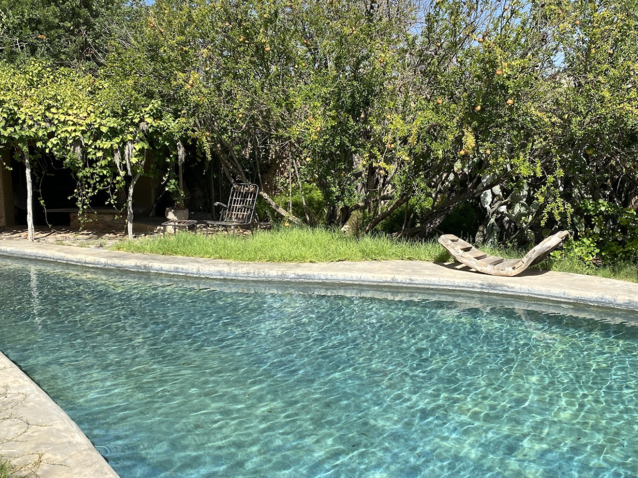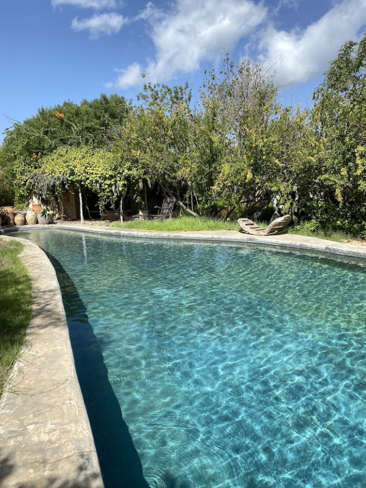 The finca is surrounded by a lush garden and a forest. The pool, secluded from the house and surrounded by plants and trees has a nice lounging area.