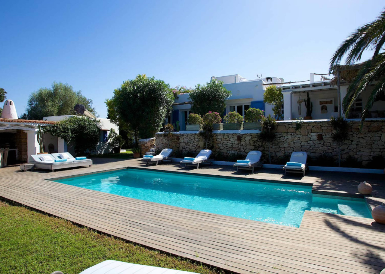 This unique villa is located in the South of Ibiza close to San Josep up in the hills and looks out over the countryside with wonderful sea views. Beautifully decorated with comfortable terraces and lounge areas, this villa combines a mix of traditional and modern Ibizan luxury. Features include: