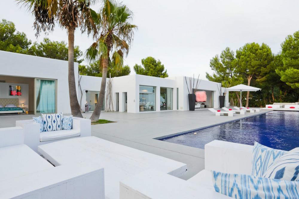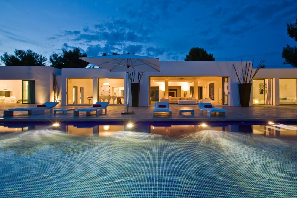 This luxury villa is located in Es Cubells, hidden away on a hillside overlooking the island and Mediterranean sea. It is the ultimate vacation home with modern furnishings and exquisite details. This is one of our high end luxury properties, located very close to several small coves and lively beaches on the wet side of the island. The contemporary property is a Mandarin Oriental Exclusive Home, with features including: