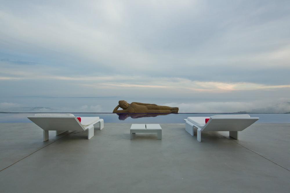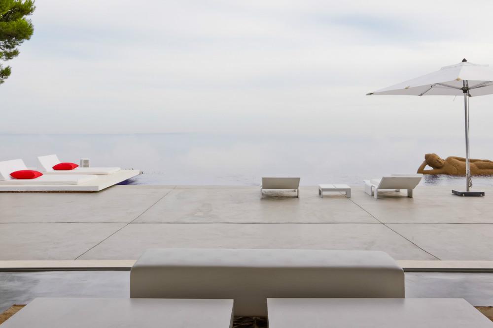 Infinity pool overlooking the sea and Es Cubells village from the hillside