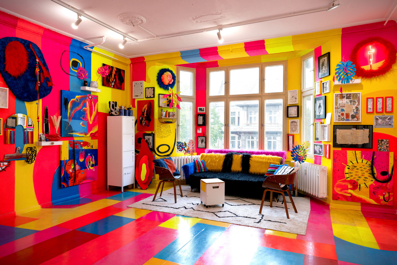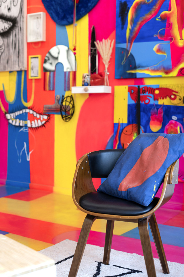 Colorful and vibrant space Studio - Atelier, with 42 sqm, all painted by hand, walls, floor, and ceiling. I work as an artist in this space and it is open to exclusive collaborations with brands, TV commercials, advertising products, videos, concerts, and events.