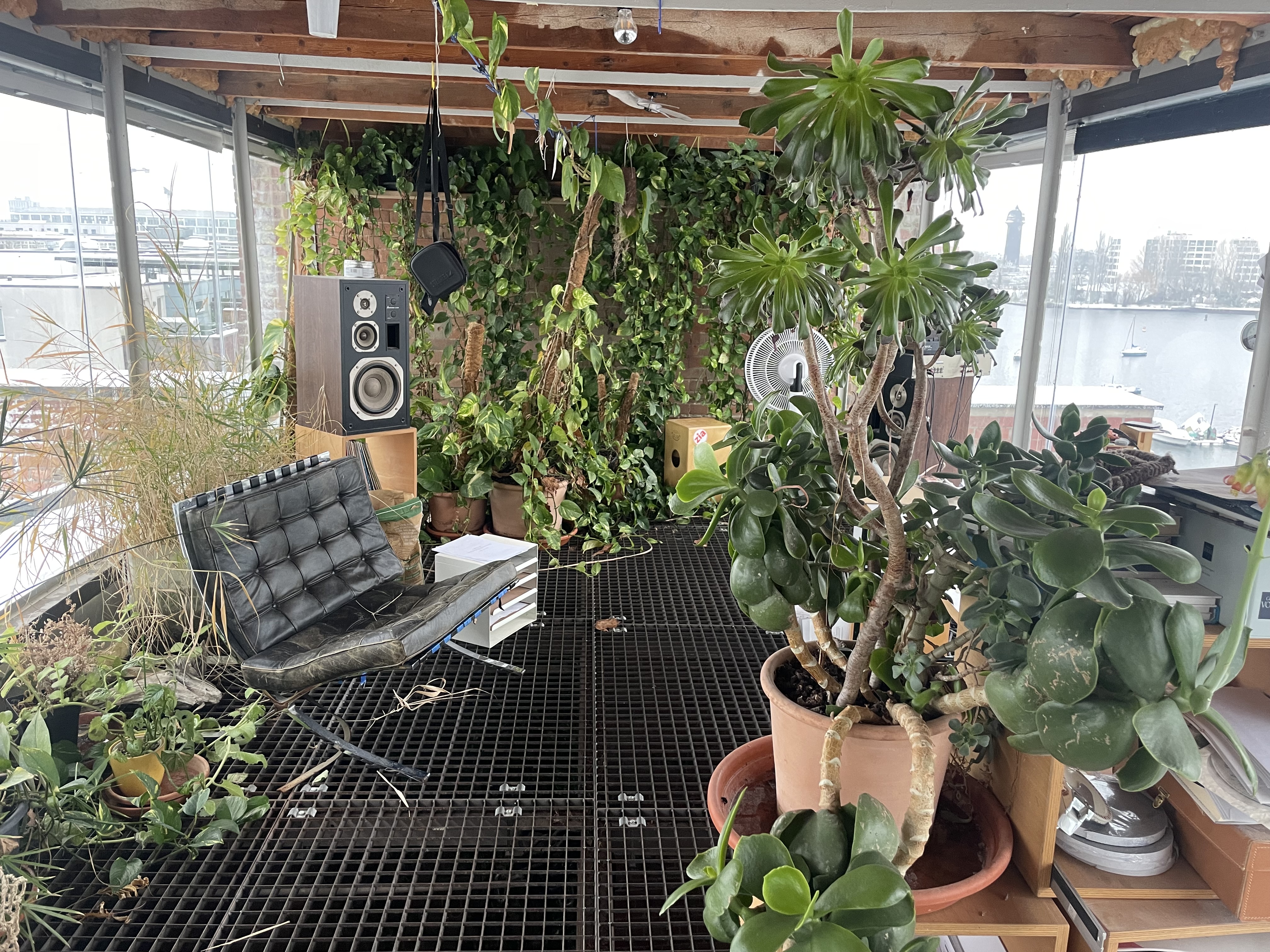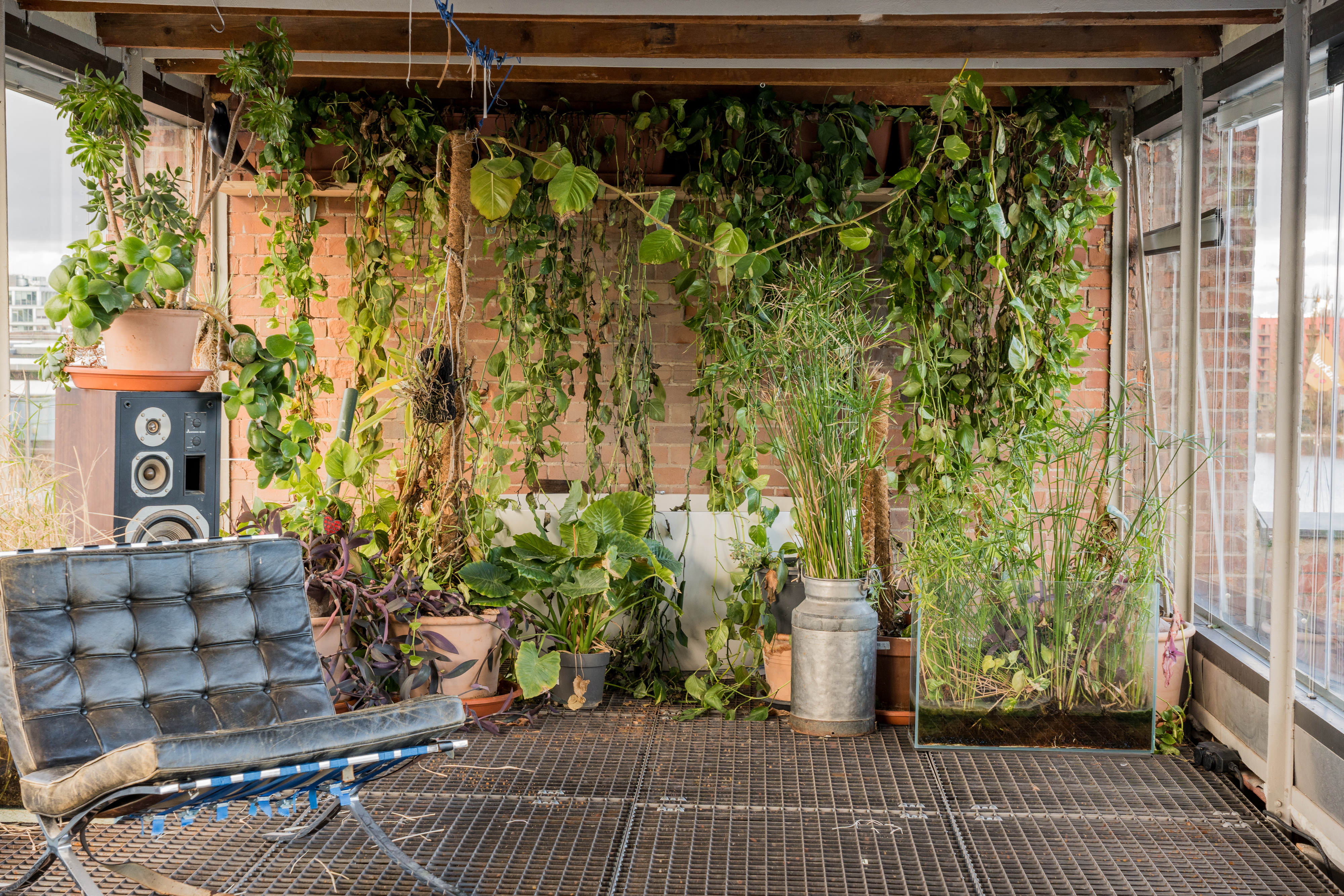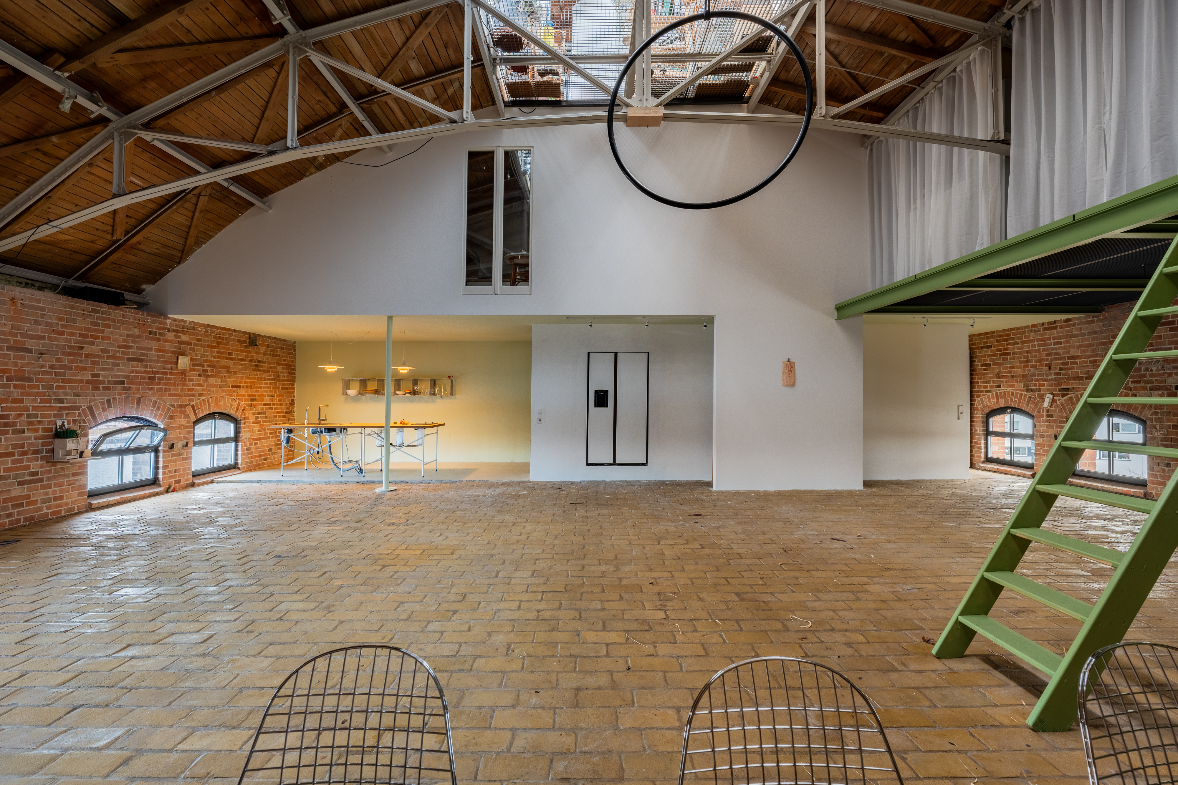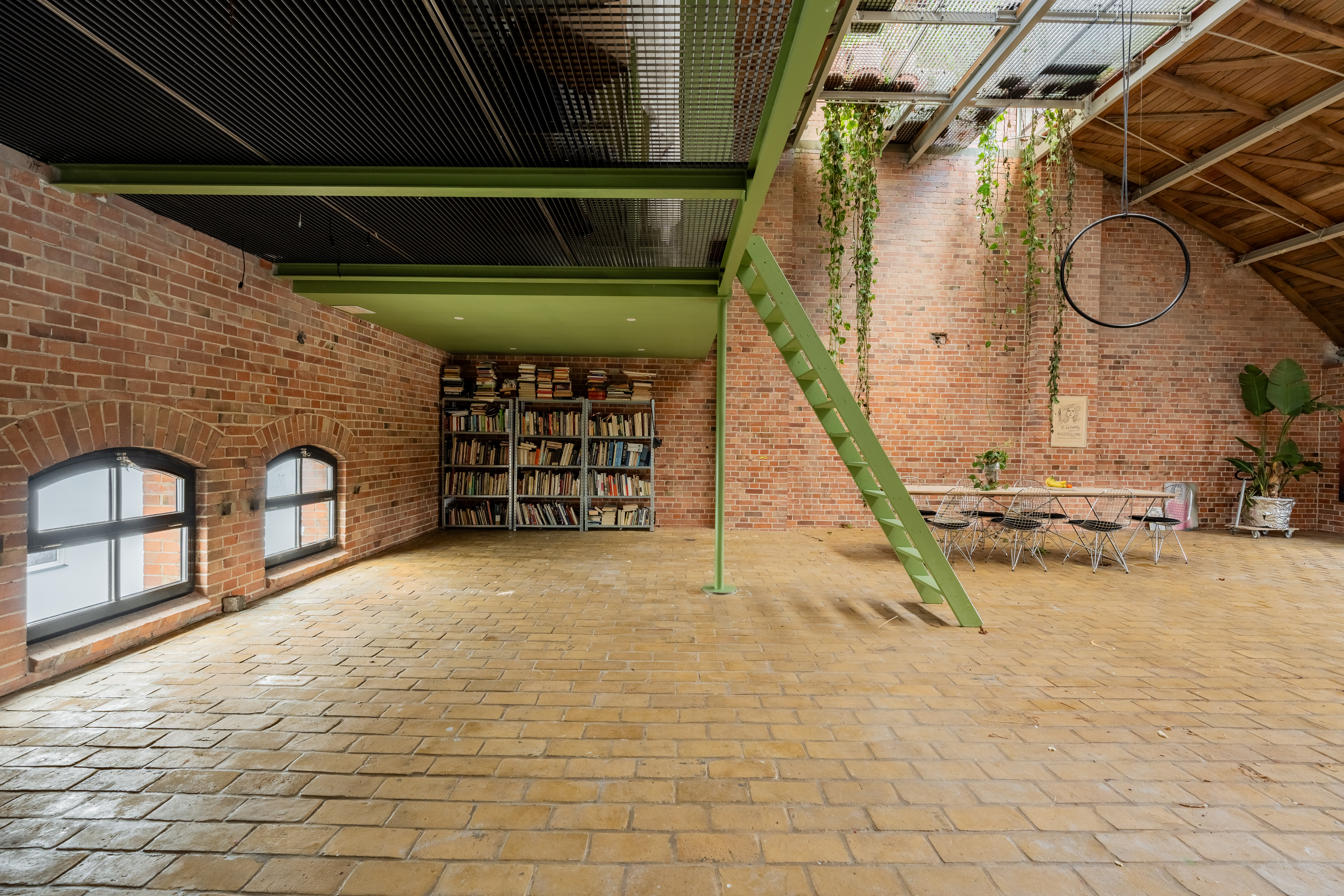 Experience urban living redefined in this spacious industrial loft, perfect for those who cherish both style and comfort. This loft boasts exposed red brick walls paired with modern minimalist interiors, creating a striking contrast that enhances its architectural allure. Large arched windows allow natural light to flood the space, illuminating the artfully decorated interiors and vibrant indoor gardens. The property features a modern kitchen with sleek appliances and brick accents, perfect for culinary enthusiasts.