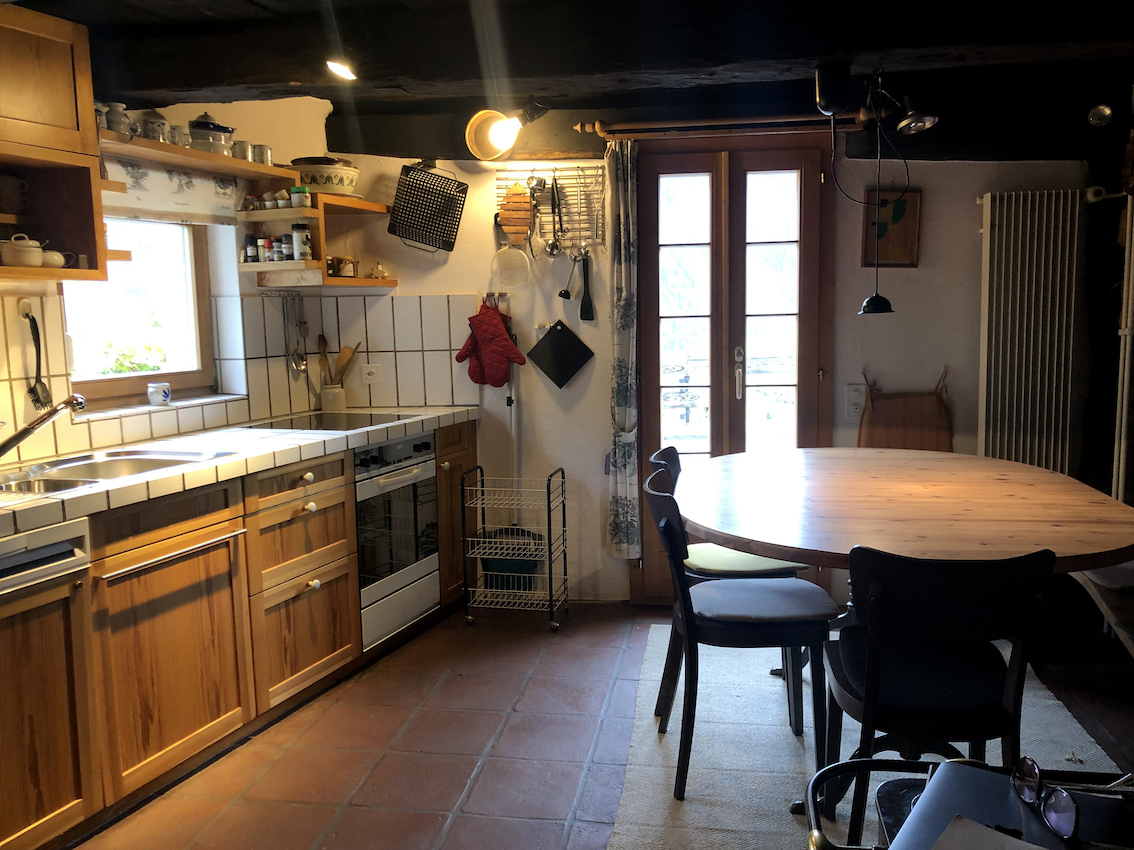 For example, the kitchen is characterized by the antique iron wood cooker with Bain-Marie and water tap for filling. While the two hundred-year-old device is fully functional, cooking dinner on it is quite an adventure, so the fully equipped modern kitchen does come in handy. With geothermal heating throughout the house, strong WIFI, three bedrooms for up to five adults, and two bathrooms – one with a massive bathtub and a large en-suite sauna – this vintage farm house offers everything you need for both long weekends or extended Alpine-office stays. And with 22 kW Type 2 charging (400V/32A), your electric car will be ready to roll again much sooner than you are.