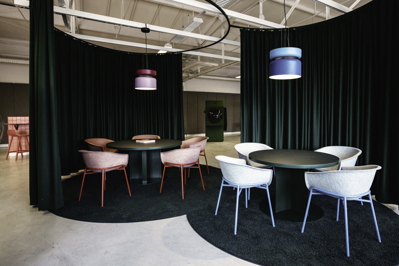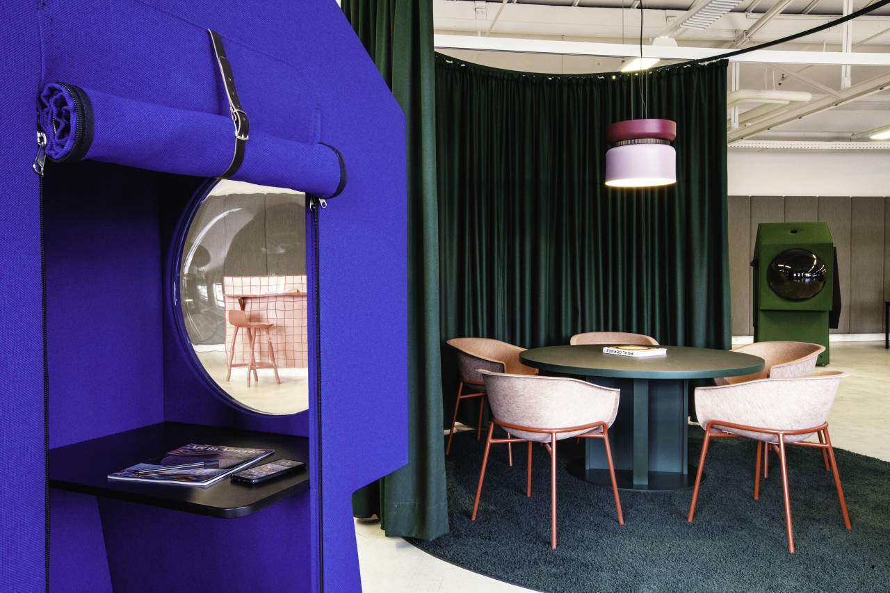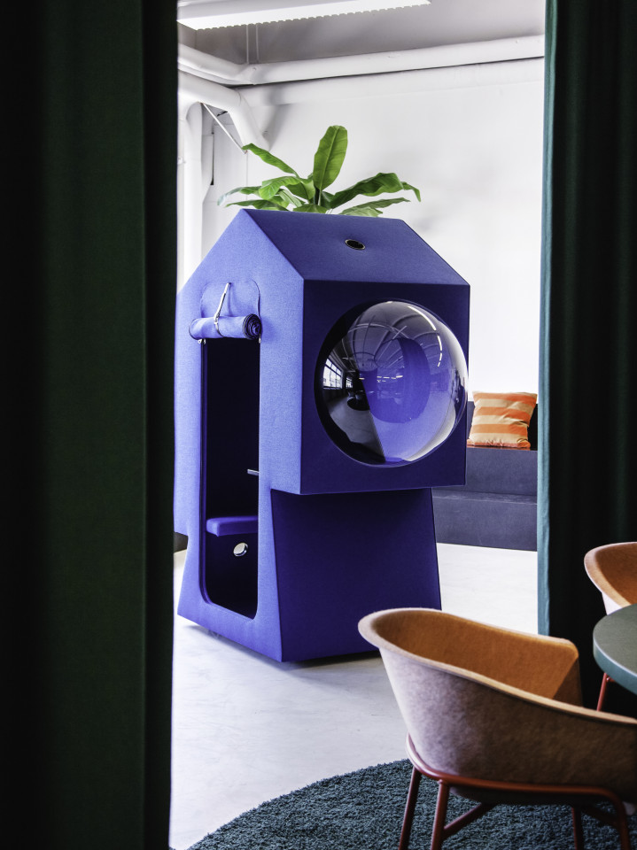 It is an office space of a different kind, a lively and inspiring working landscape breaking through the grey schematism of standardized workstation units - a work environment as a holistic experience. The 1000 sqm hall with an open ceiling structure has co-working areas, break-off units, and work capsules. Created by Tina Bunyaprasit and Werner Aisslinger