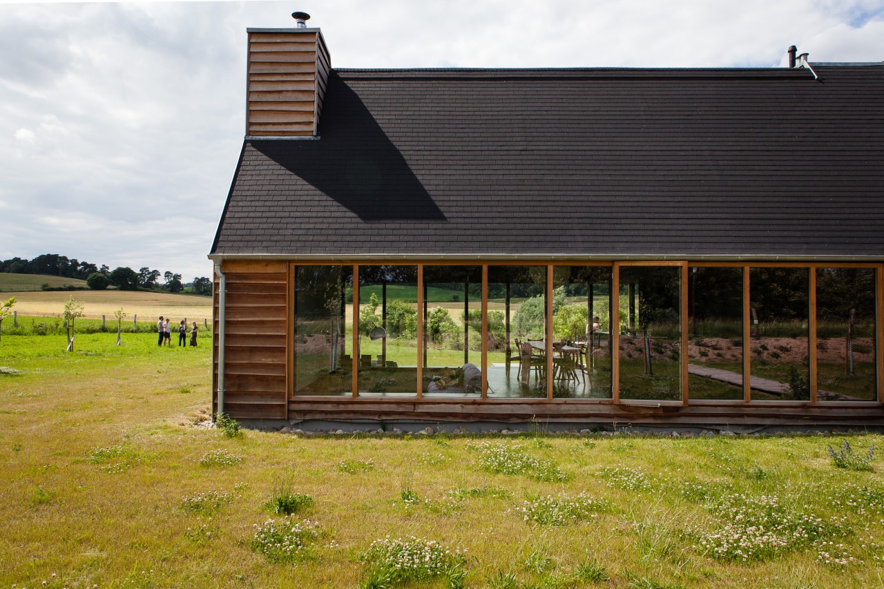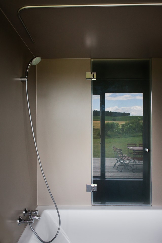 A timber house with large glass windows that allow the daylight to bathe the black-tinted surfaces with a natural glow. The ground floor has a large living area, a fireplace, an open kitchen and two alcoves which can be separated by glass sliding doors. These hold a bedroom and a bathtub with views of the countryside which will leave you in total awe. The top floor has 2 double bedrooms with a guest toilet each and an exceptional library. No wonder this home has already been featured in numerous German magazines such as Ad Magazine, Der Architekt and received multiple awards: