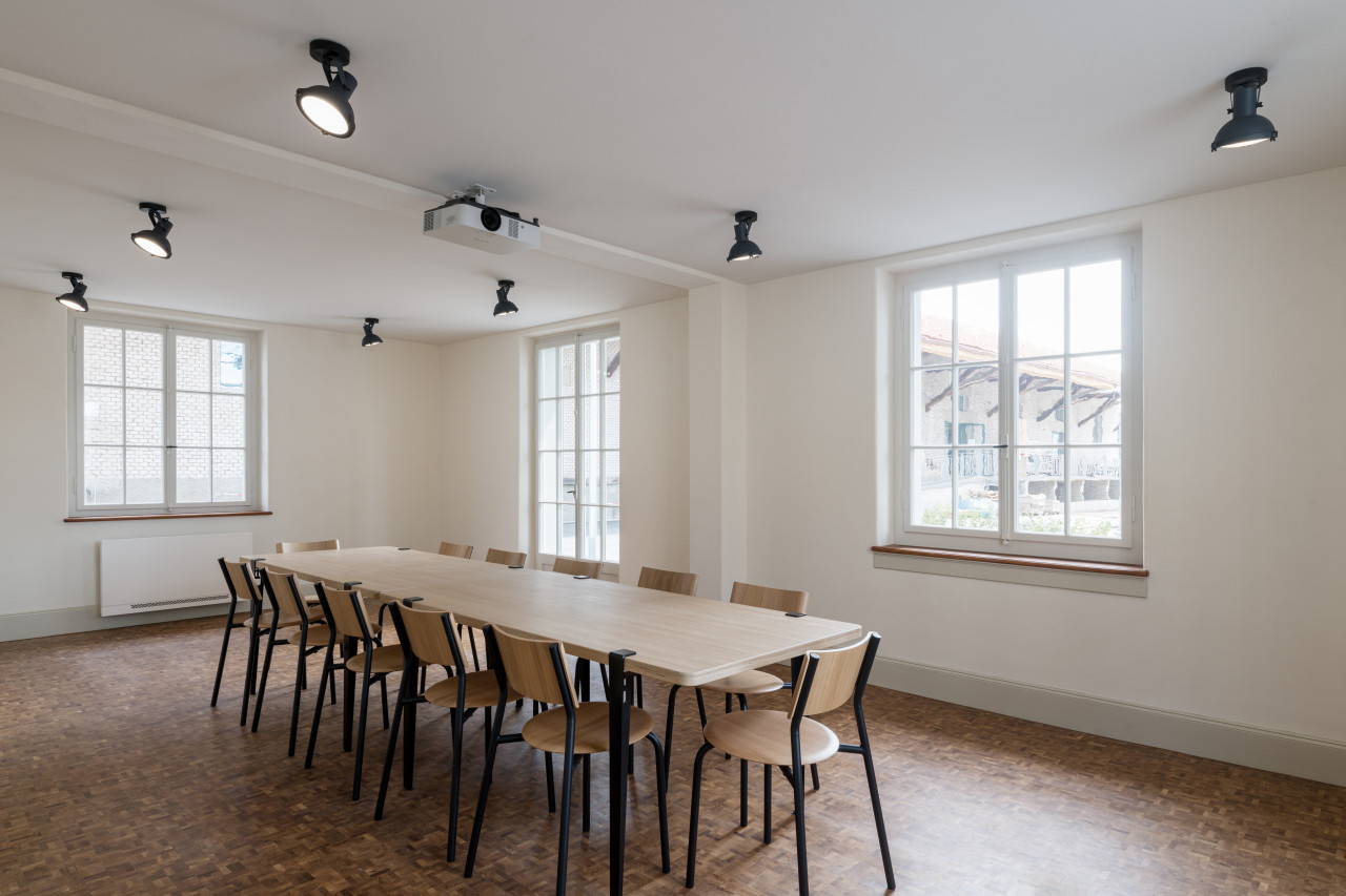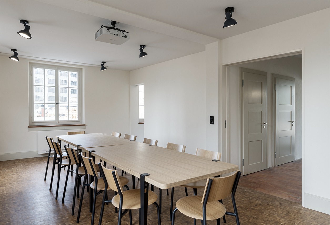 Where guests were once welcomed, there is now a modern meeting room available for rent, perfect for meetings and workshops. The room, which includes an attached kitchen and foyer, is also ideal as a location for birthday and other celebrations.