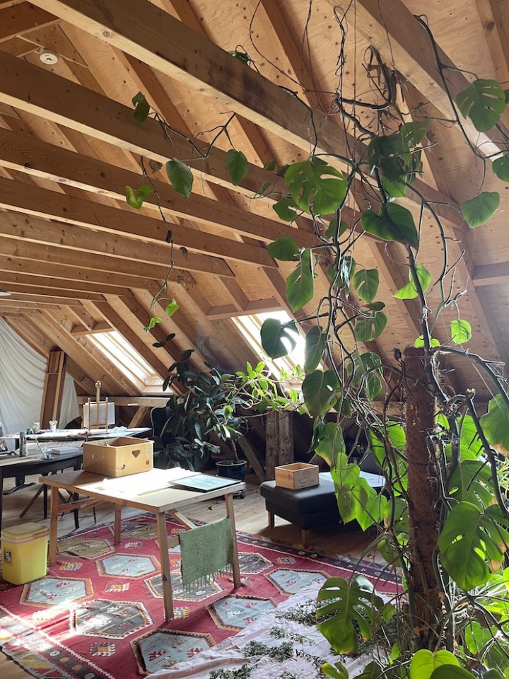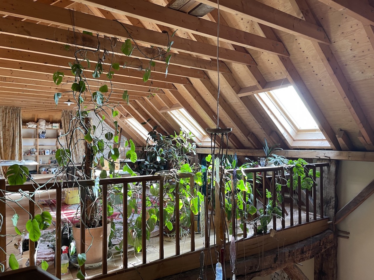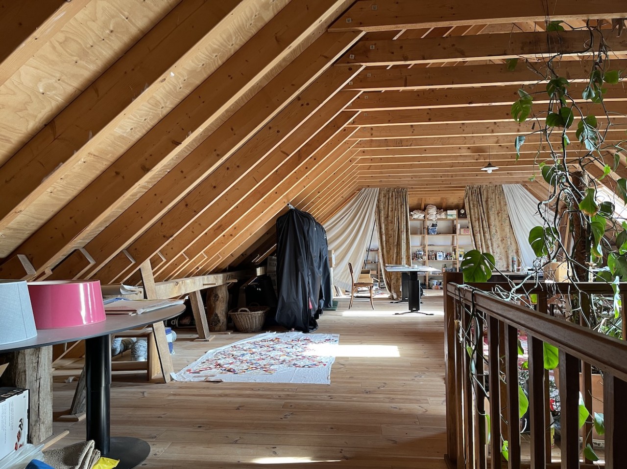 With two floors, three bedrooms and multiple rooms with a variety of settings, the top floor holds a large attic with wooden rafters and dangling plants, one of many exceptional backdrops. There is also a barn, a vegetable garden, a green house and plenty of land.