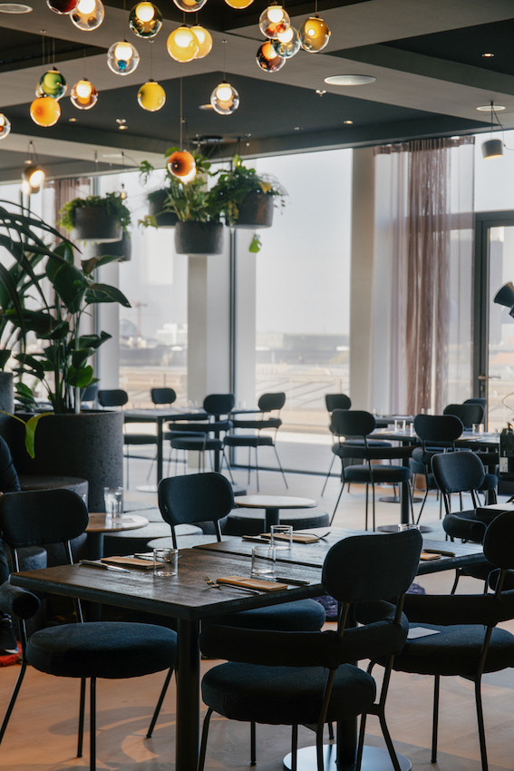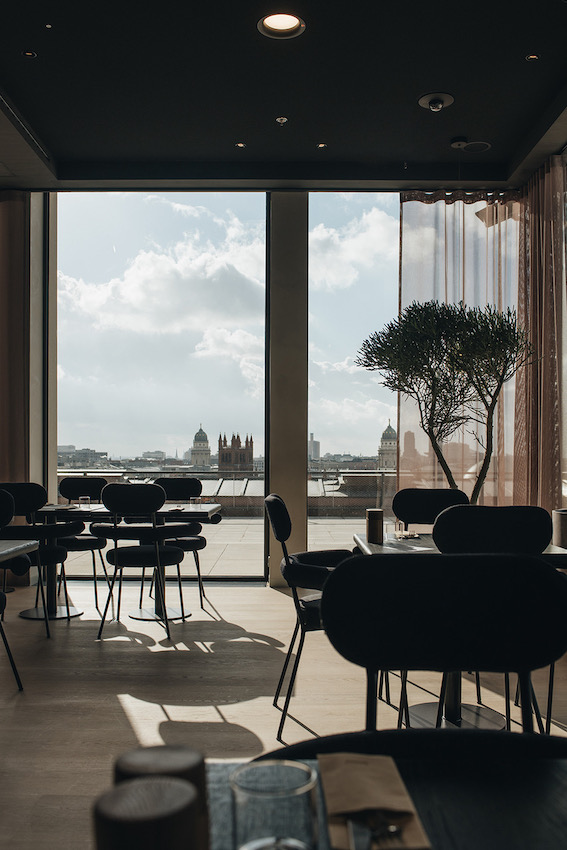 The atmosphere is modern and urban - as individual as the place itself. The purist, clear design with strong contrasts between light and dark creates a generous, open feeling of space with a wide view over the city and at the same time an unmistakable atmosphere of well-being.