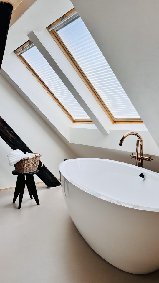 BARN (120 m² / 1,300 ft²) - A spacious event space equipped with a professional kitchen made of raw steel with high-end GAGGENAU appliances, a dining area with a 4-meter-long oak table, an event and lounge area with a piano and sound system, as well as 2 gallery-style bedrooms and 1 bathroom (shower/WC).HAYLOFT (90 m² / 968 ft²) - A light-filled space with an open seating/living area, 2 bedrooms, a luxurious bathroom (bathtub and shower, WC), and a kitchen equipped with GAGGENAU appliances. Connected to the main Barn.