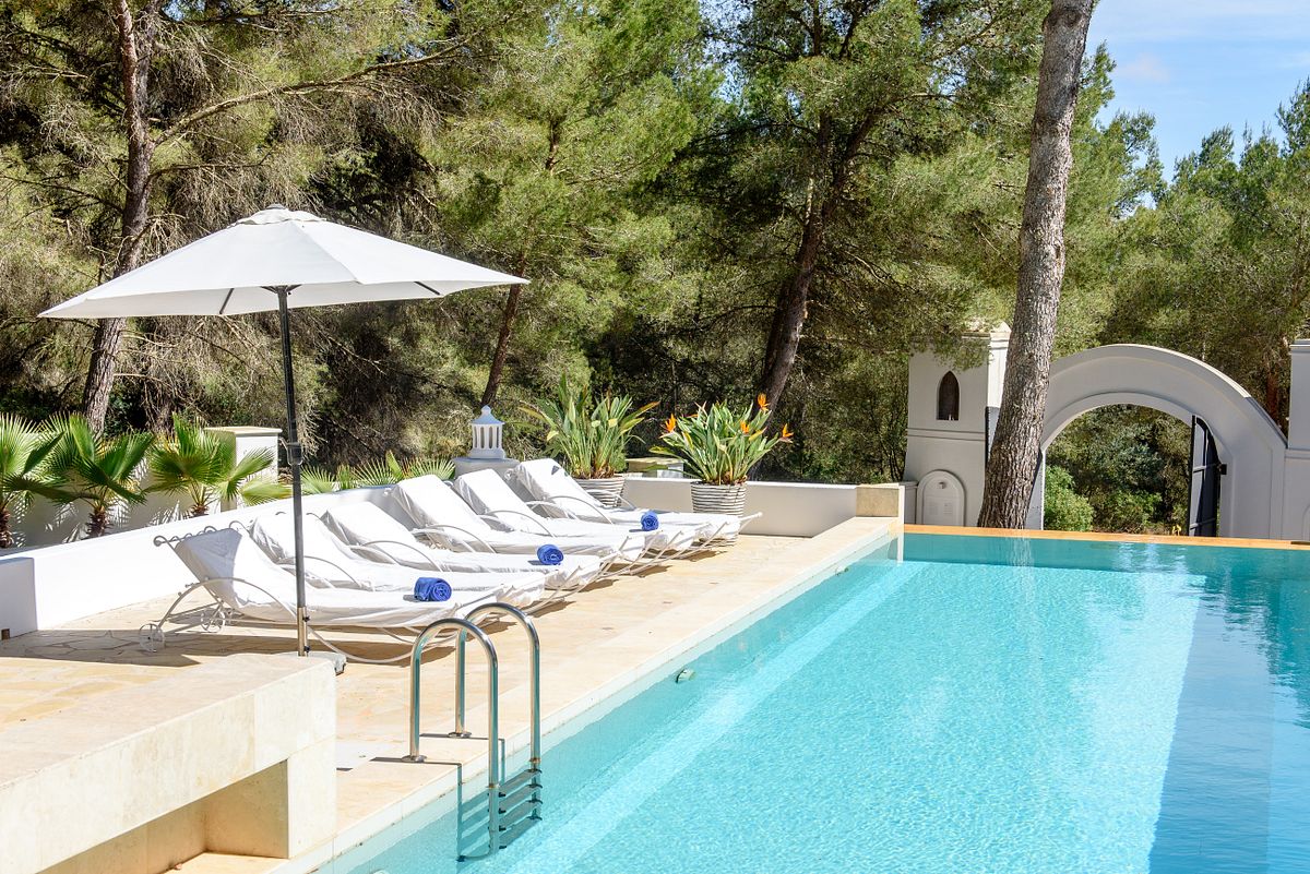 25m pool surrounded with sun loungers and bbq area