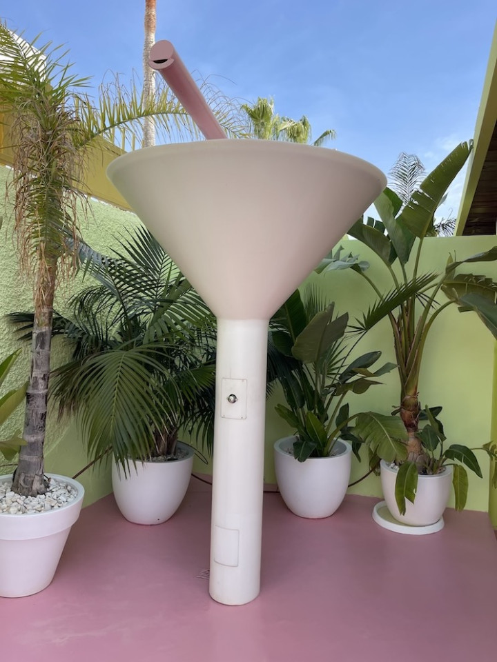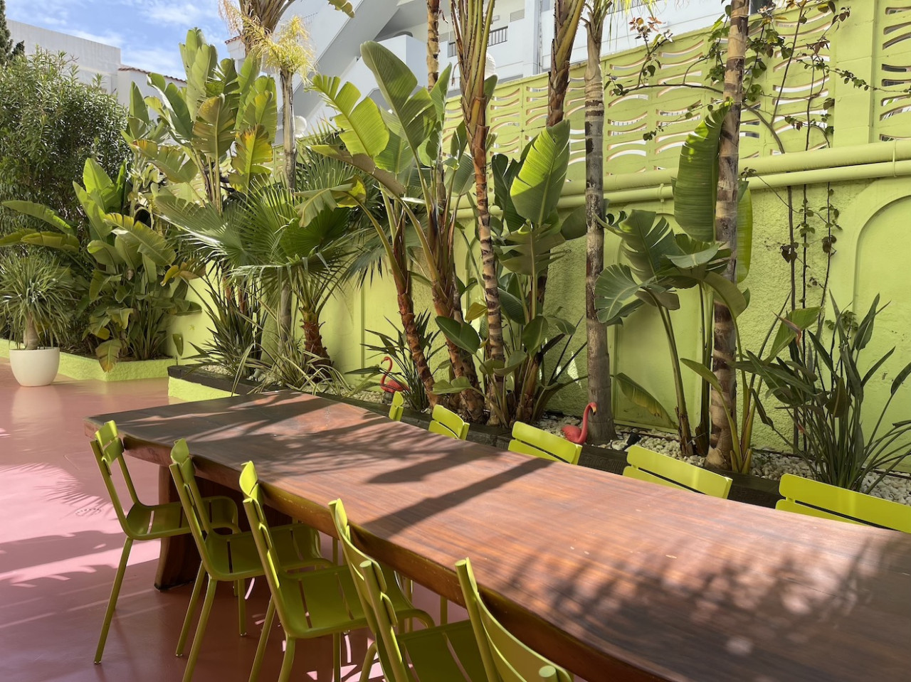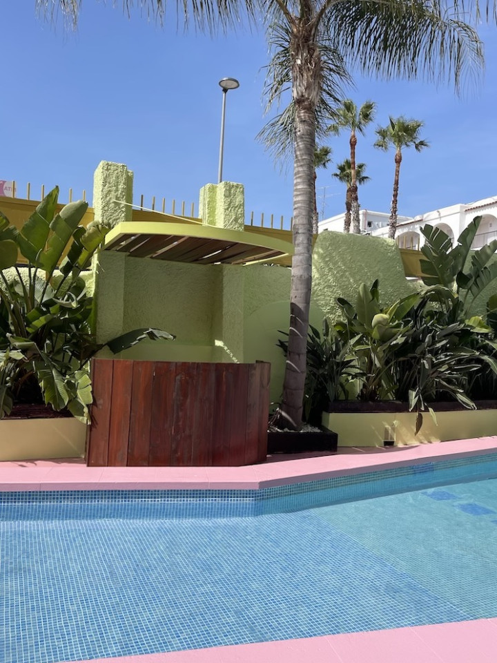 We are in Playa d’en Bossa, just off the main boulevard and only 200 metres from the beach, while being lucky enough to have peace and quiet because of our location. We wanted to offer a different hotel to the habitual ones found in Ibiza, and we have been inspired by the iconic Art Deco hotels in Miami, reinventing and obtaining a personal and contemporary style, related to the festive and colourful spirit of the island we love.