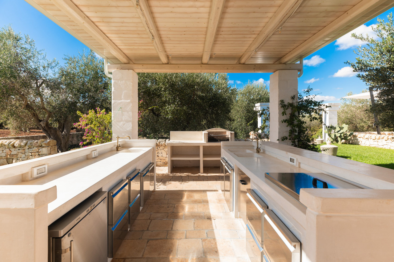 A well-equipped external kitchen and dining area means that summer days and nights can be enjoyed outside.