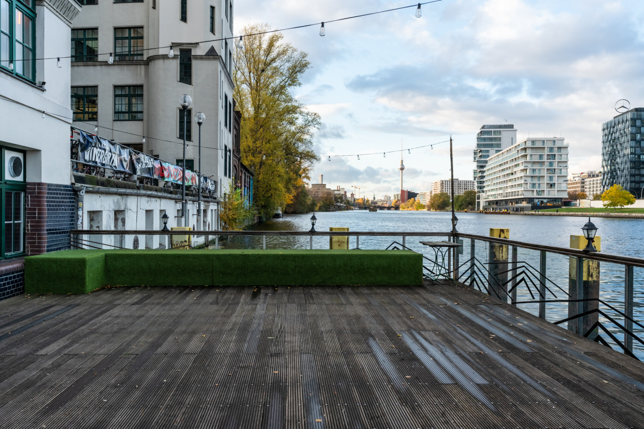 Indoor and Outdoor Event Space with Terrace right next to the river in Kreuzberg with a beautiful Waterfront.