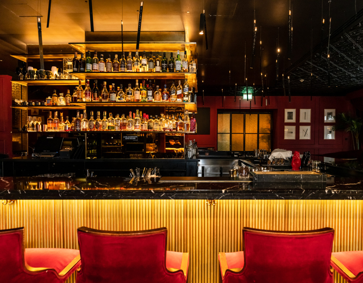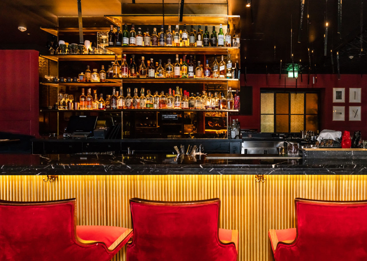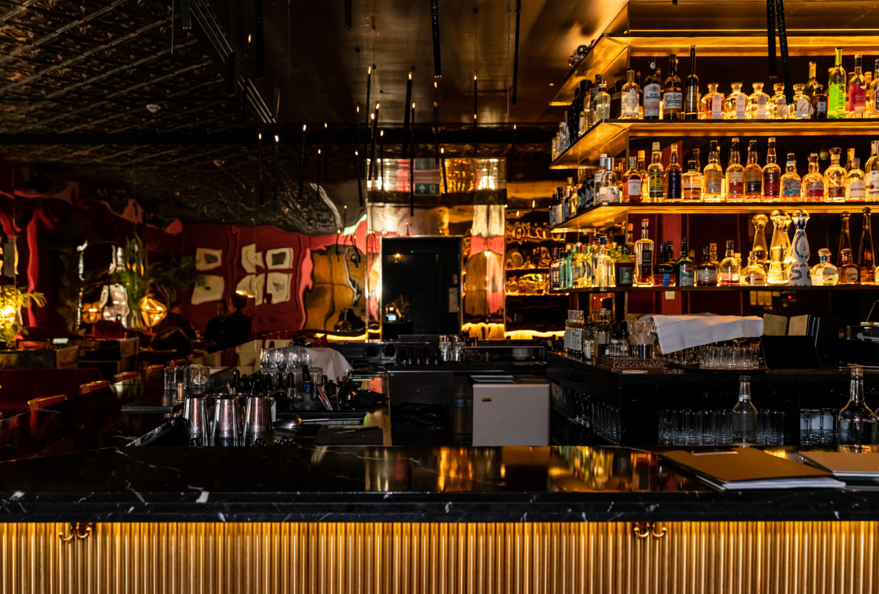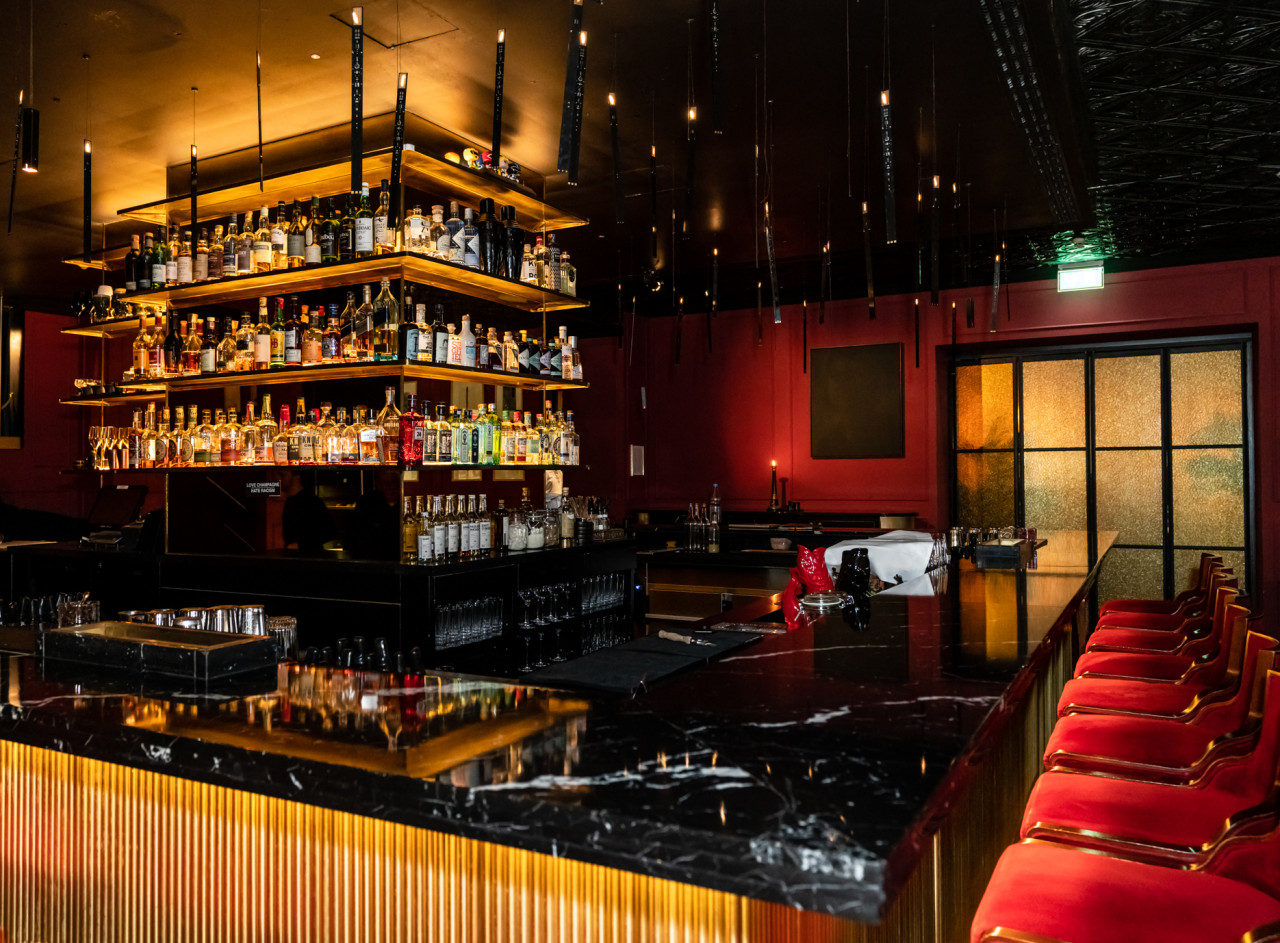 The burlesque style with it's adjacent restaurant measures a total of 210m2 and holds a capacity of 130 seated clients and 210 standing for flying buffet service.
