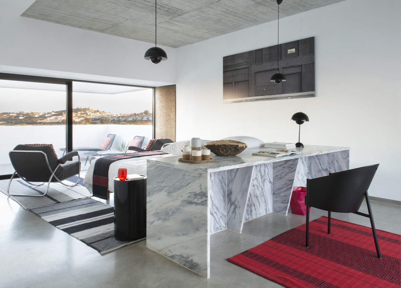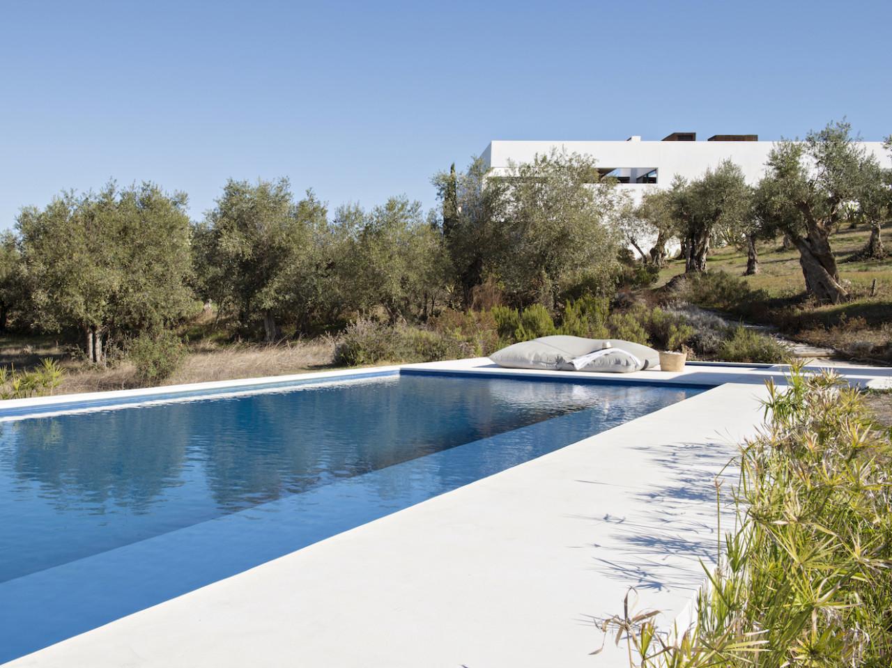 The villa's architecture welcomes you to a very contemporary property with strong and graphic lines and shapes. The design feels bolder in contrast with the countryside surrounding it.