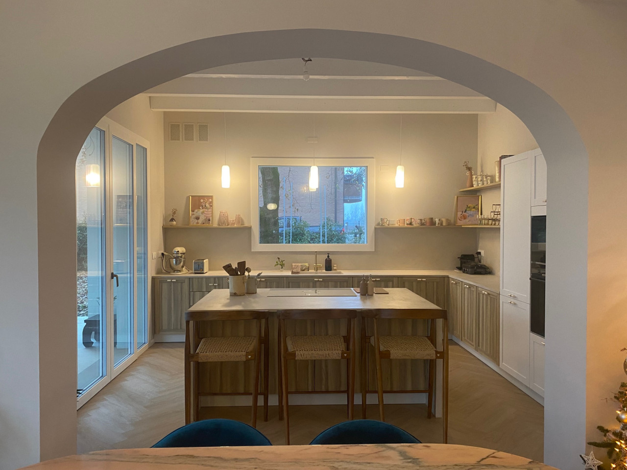 Villa del 2024 a 15 minuti dall'autostrada, con giardino privato, area lounge esterna e ampi parcheggi. Parquet in tutte le stanze, soffitti con travi a vista in legno bianco, porte filomuro e finiture di pregio. Il punto di forza u00e8 sicuramente l'open space di oltre 60mq, con ampio divano centrostanza, cucina con isola e tavolo in marmo rosa. Sull'open space si affaccia la scala in ferro battuto e il ballatoio. Molto luminoso grazie alle 3 vetrate che danno sul giardino.