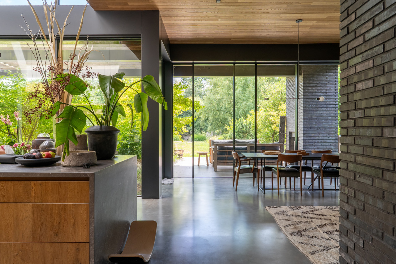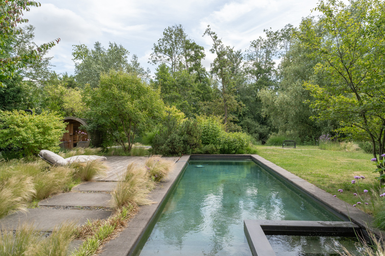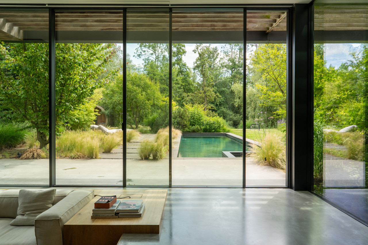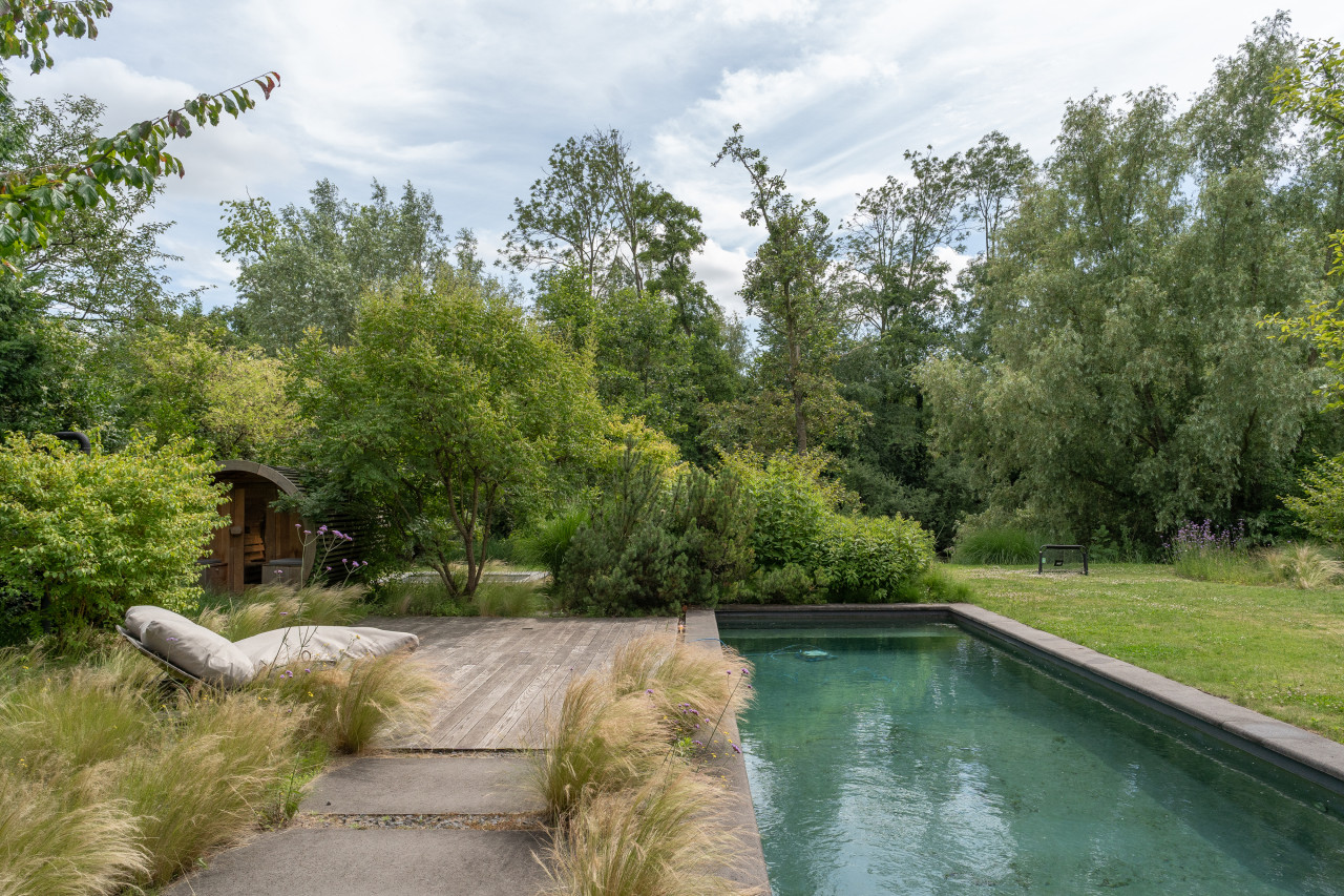 This location in Amsterdam is a breathtaking villa-loft that merges minimalist architecture with organic materials and lush surroundings, making it a premium choice for photo and film productions as well as high-end events. The open layout, framed by full-height glass sliding doors, seamlessly connects indoor and outdoor living, flooding every room with natural light and offering direct visual access to the surrounding greenery and the private swimming pond. Every corner of the interior is designed with precision and warmth—from the sculptural wooden kitchen and sleek concrete floors to custom-built shelving, high-end finishes, and curated design pieces. The living spaces are layered with textures and neutral tones that provide a perfect backdrop for cinematic visuals, editorial shoots, or intimate gatherings. The atmosphere is tranquil yet luxurious, with features such as a library corner, spa-like bathrooms, a serene master suite, and multiple seating zones that all speak to modern comfort and style. The exterior is equally cinematic, with landscaped gardens, shaded terraces, and a natural pool edge surrounded by trees, ideal for fashion campaigns, brand activations, or immersive guest experiences. Tucked away in a peaceful part of Amsterdam with easy access to the city center, this villa-loft offers total privacy, exceptional light, and an architecturally rich setting that elevates any production or exclusive event into something visually and emotionally memorable.