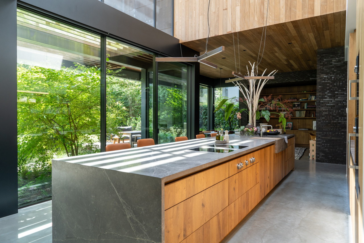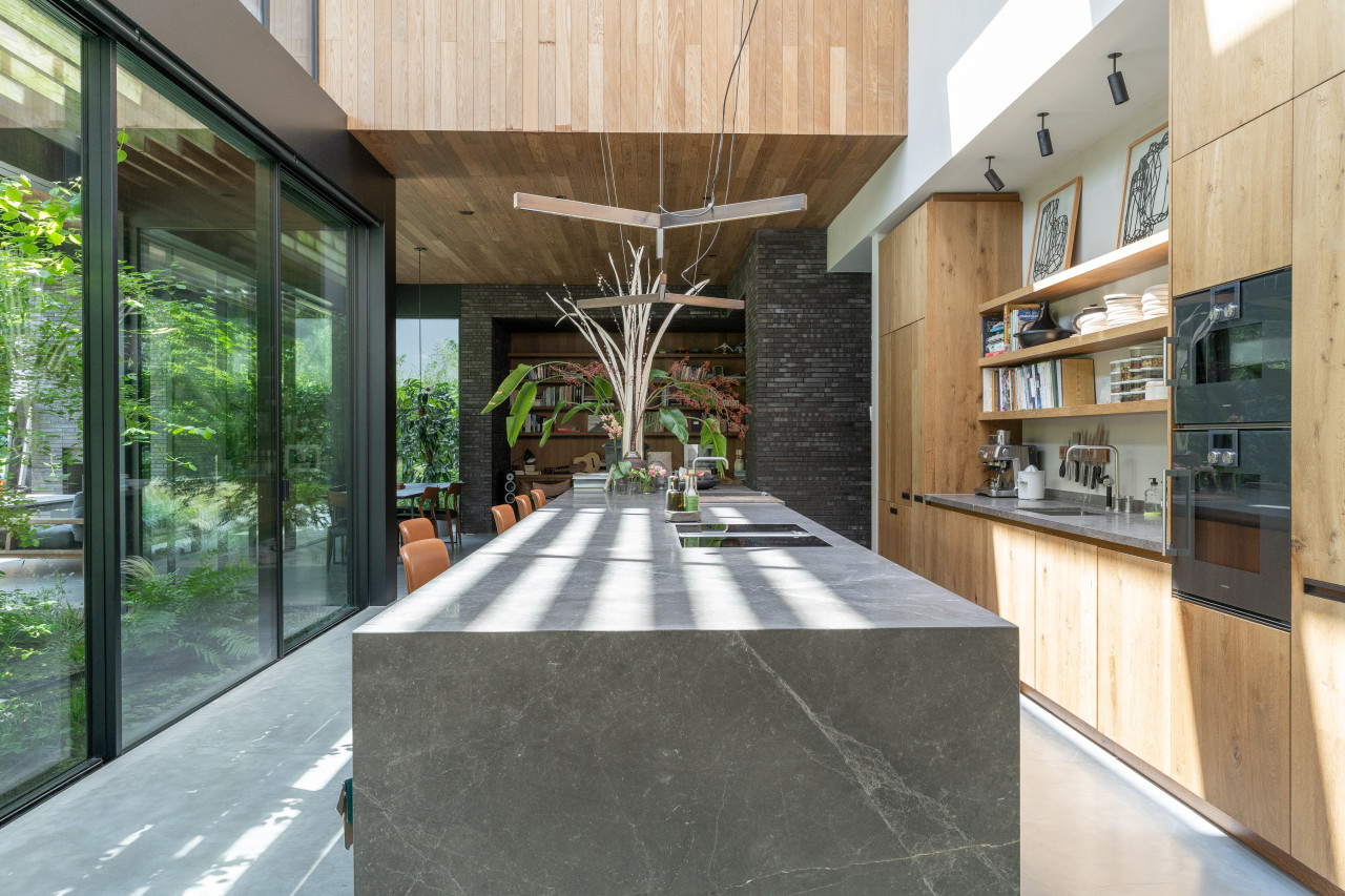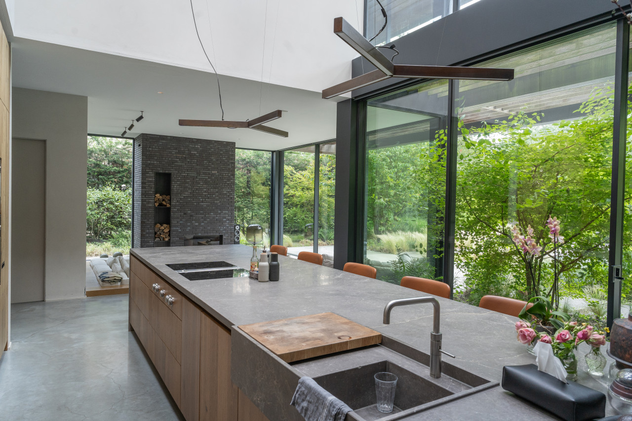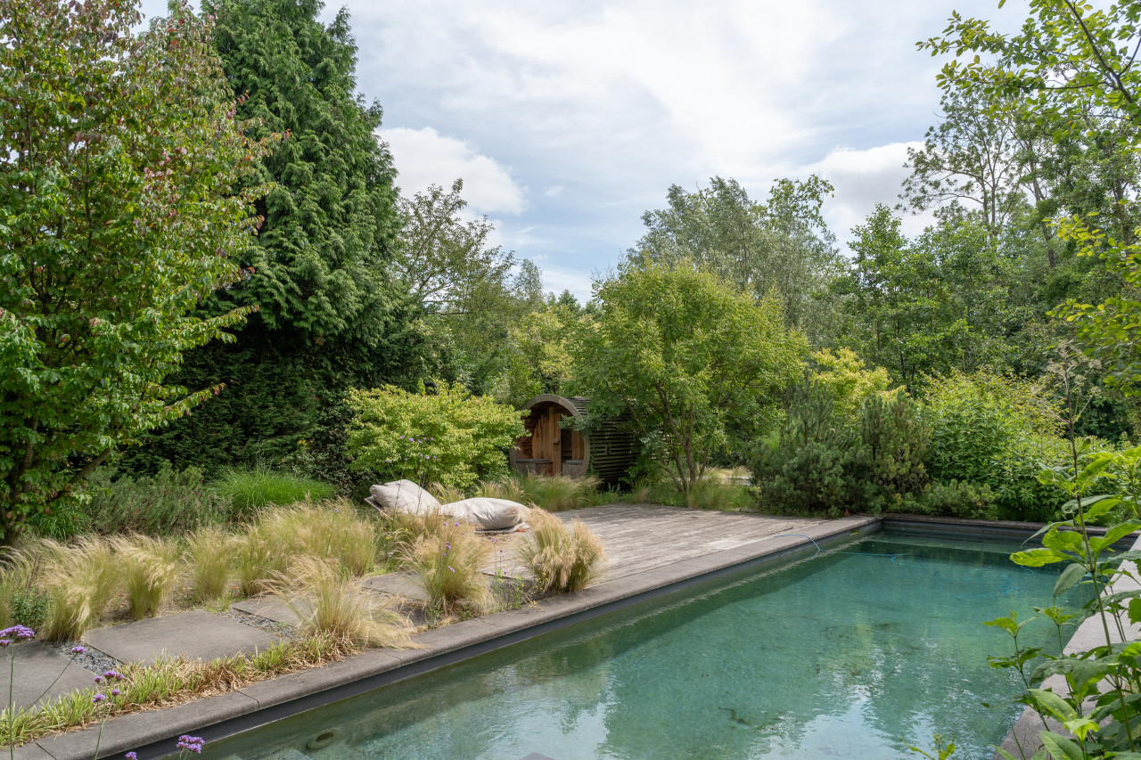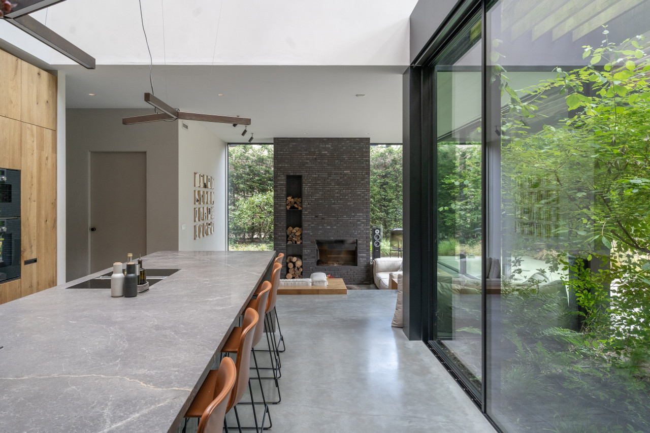 This location in Amsterdam is a breathtaking villa-loft that merges minimalist architecture with organic materials and lush surroundings, making it a premium choice for photo and film productions as well as high-end events. The open layout, framed by full-height glass sliding doors, seamlessly connects indoor and outdoor living, flooding every room with natural light and offering direct visual access to the surrounding greenery and the private swimming pond. Every corner of the interior is designed with precision and warmth—from the sculptural wooden kitchen and sleek concrete floors to custom-built shelving, high-end finishes, and curated design pieces. The living spaces are layered with textures and neutral tones that provide a perfect backdrop for cinematic visuals, editorial shoots, or intimate gatherings. The atmosphere is tranquil yet luxurious, with features such as a library corner, spa-like bathrooms, a serene master suite, and multiple seating zones that all speak to modern comfort and style. The exterior is equally cinematic, with landscaped gardens, shaded terraces, and a natural pool edge surrounded by trees, ideal for fashion campaigns, brand activations, or immersive guest experiences. Tucked away in a peaceful part of Amsterdam with easy access to the city center, this villa-loft offers total privacy, exceptional light, and an architecturally rich setting that elevates any production or exclusive event into something visually and emotionally memorable.
