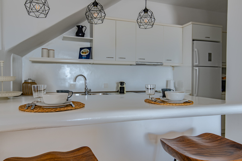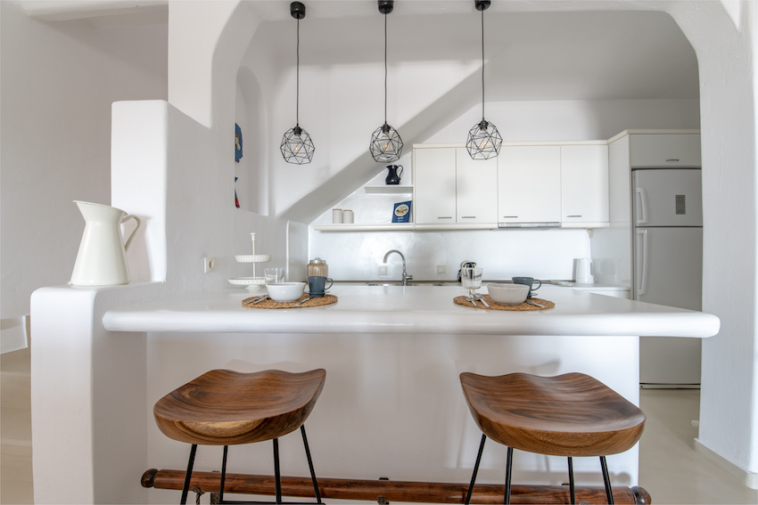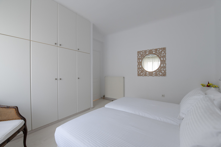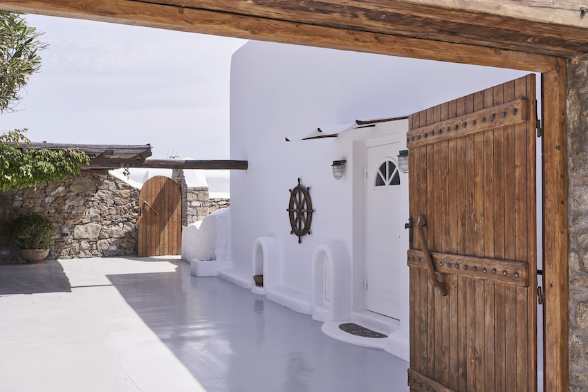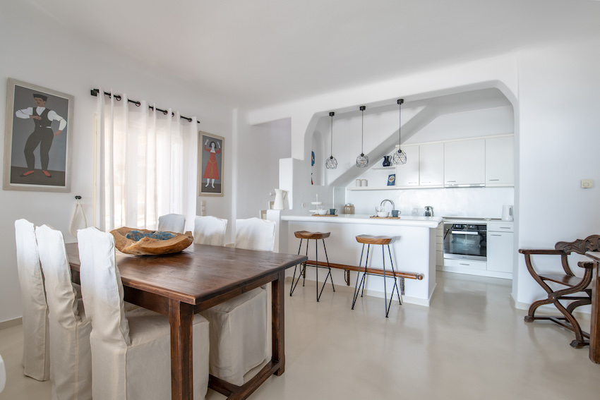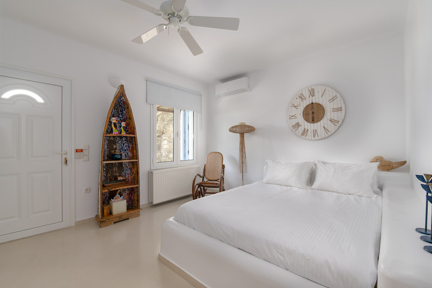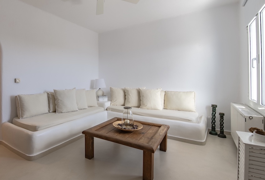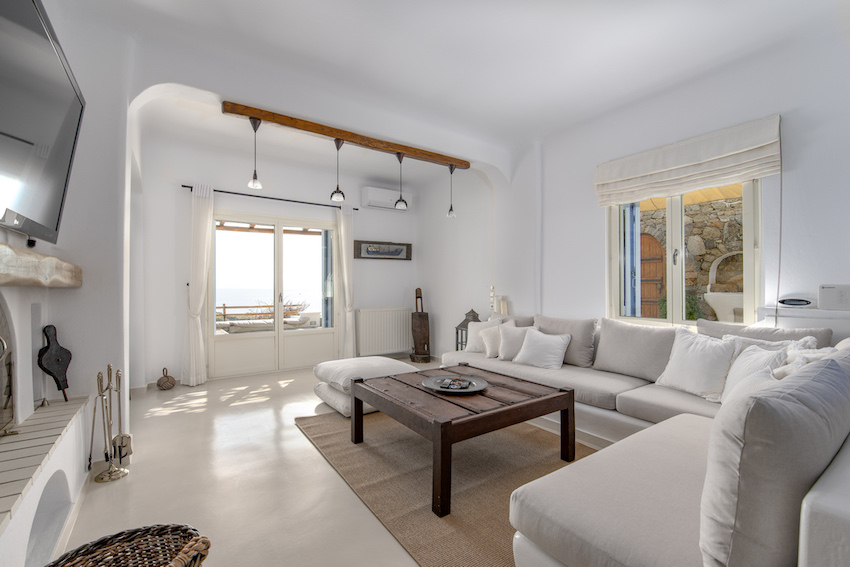 This stunning 5 bedroom villa it is located in Aleomanda area of Mykonos. In the upper level there are 2 bedrooms with 2 en-suite bathroom with a private veranda gazing the Aegean blue from both rooms.