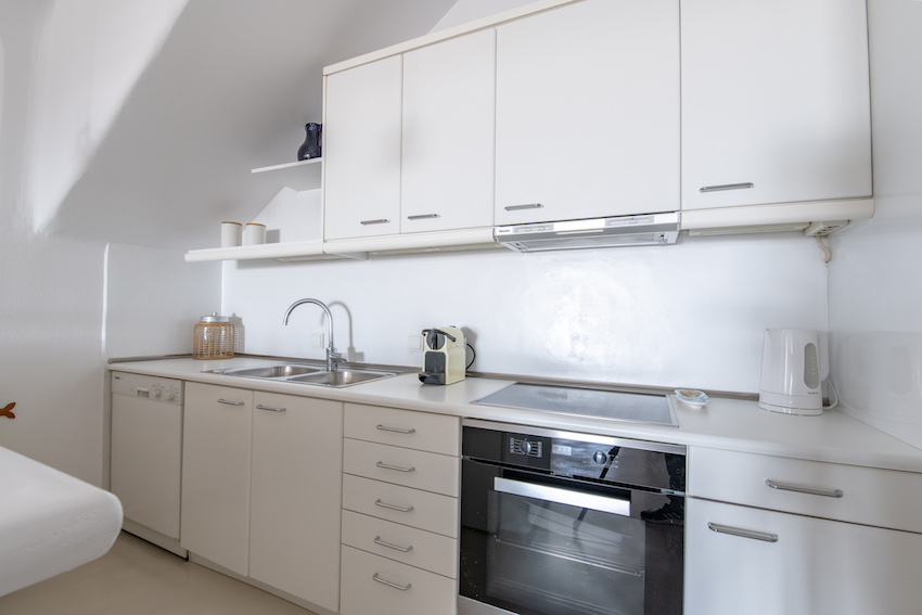 In the pool level you will find the kitchen and the stone-built living room. There is also a fireplace for the winter. In the same level there is another spacious minimal ensuite bedroom with two single beds. On the lower level it is the Guesthouse which has two entraces.