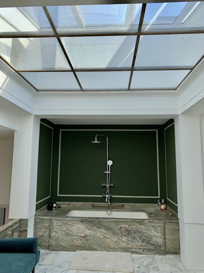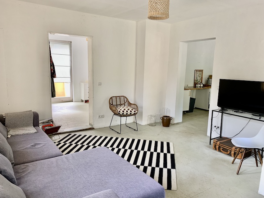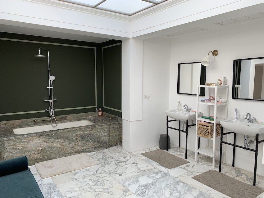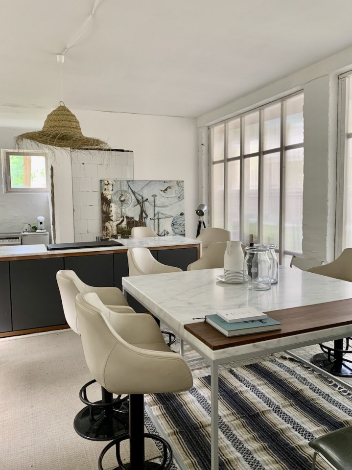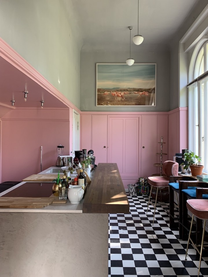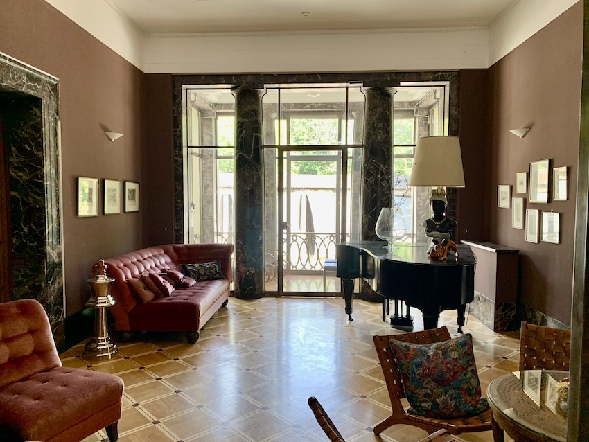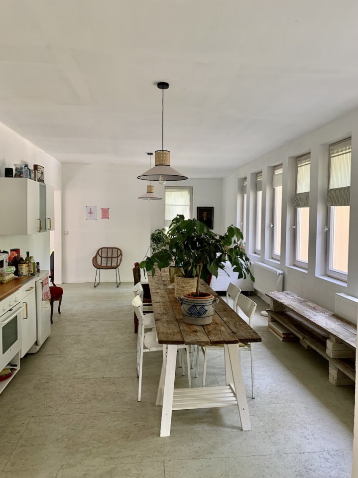 Less than an hours drive from Berlin this beautiful villa stands out at first glance, the greek pillars make a spectacular entree, altbau ceilings and mármol frames embellish the house while the interior design is distinguished for the colour combinations in each room, calm pastel colours like pink and green and a soulful brown. The leather and velvet sofas in each room are plush and inviting. And the pair of legs in the garden will leave in you in total awe.