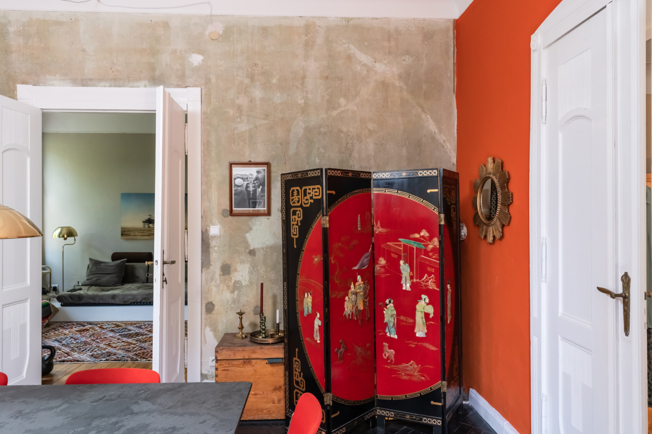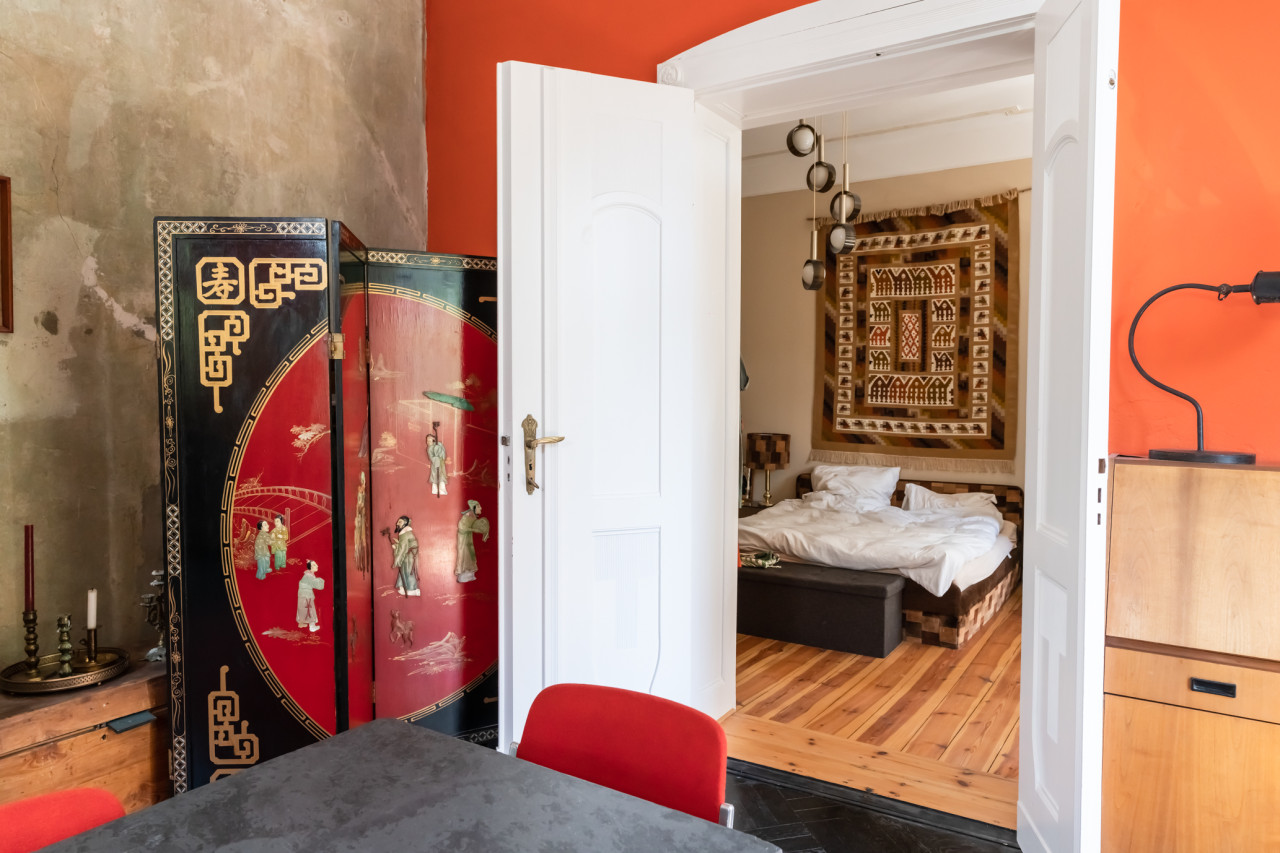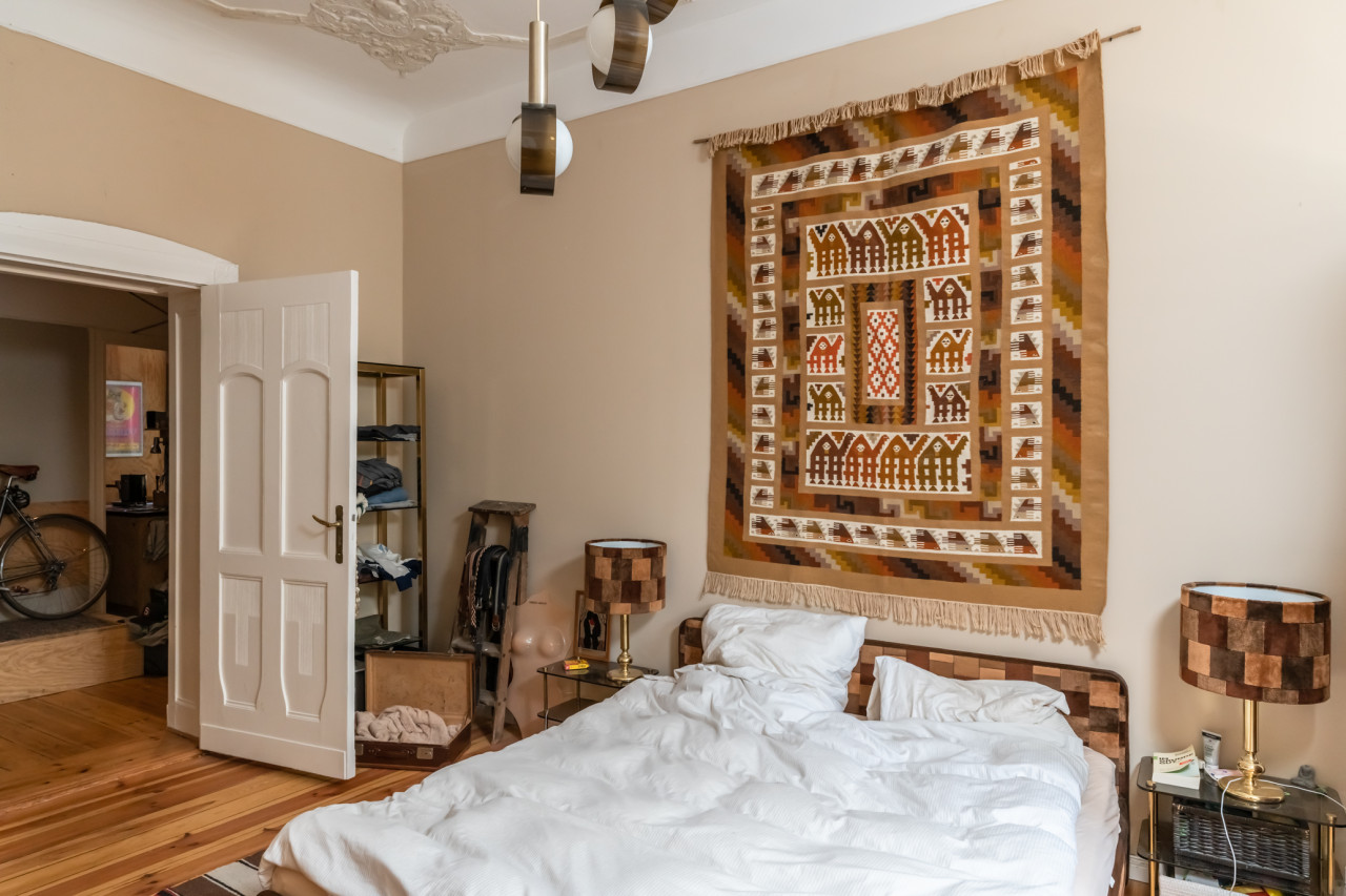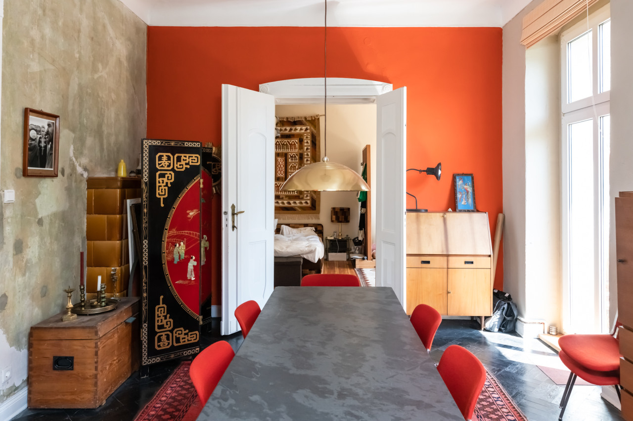 The warm colours, altbau ceilings, wooden floors and big vivid carpets give this house a vintage look with an eclectic twist characterised by the different gems scattered around the house that remind one of a travellers home. This apartment has a cosy and unique feeling offering many kinds of motifs for shootings and productions.