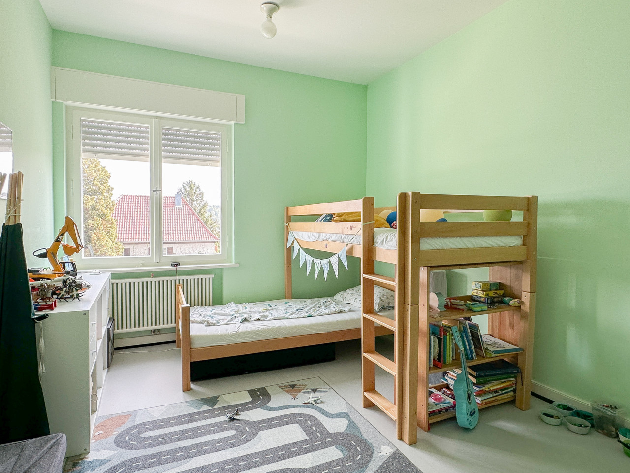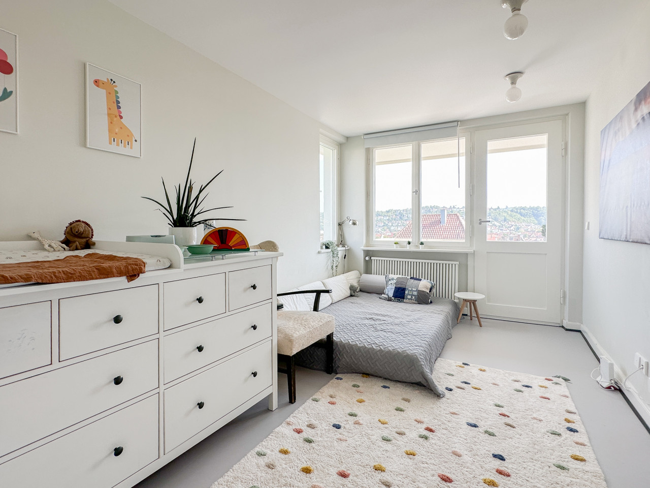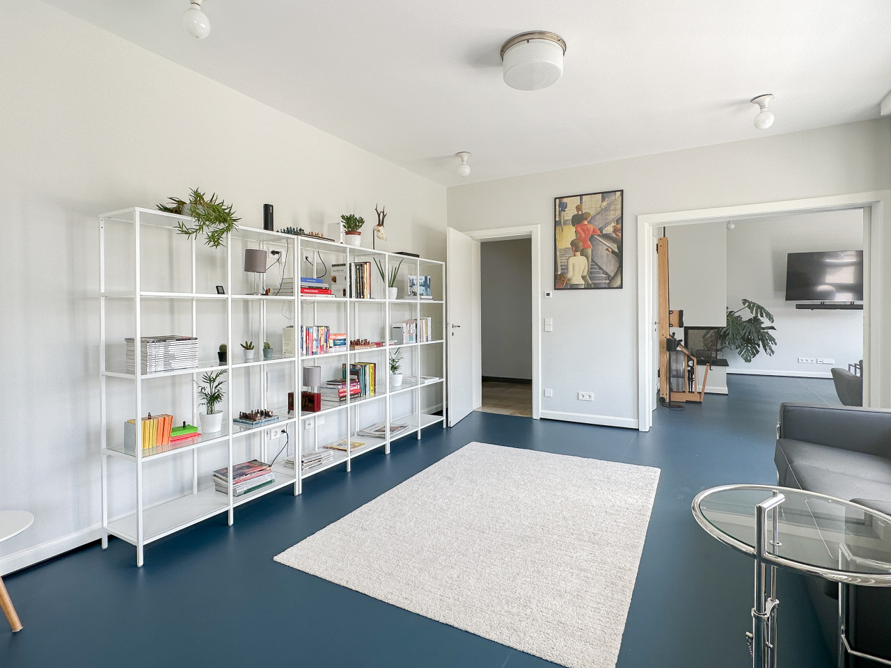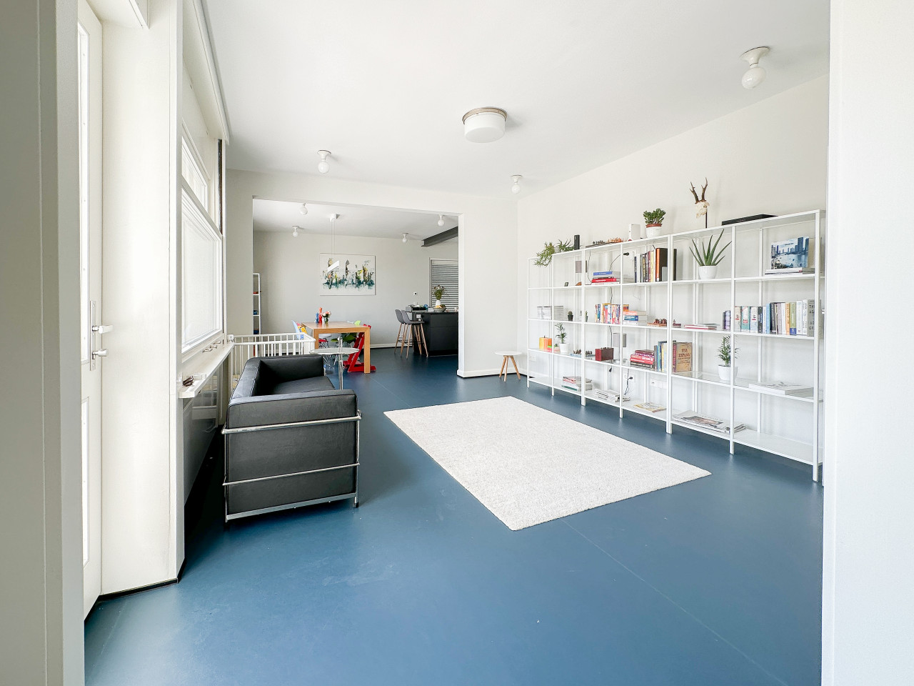 Explore this bright and colourful apartment in Stuttgart, Germany, perfect for photo and film productions. The space is filled with natural light, enhancing the vibrant atmosphere and showcasing the eclectic mix of vintage furniture and funky elements.