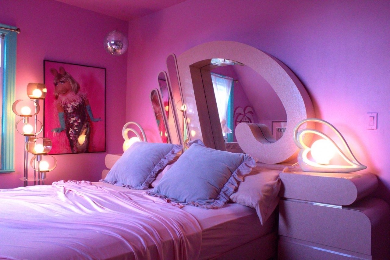 "The bedroom was designed around the Miss Piggy glamour shot hanging next to the bed’’.