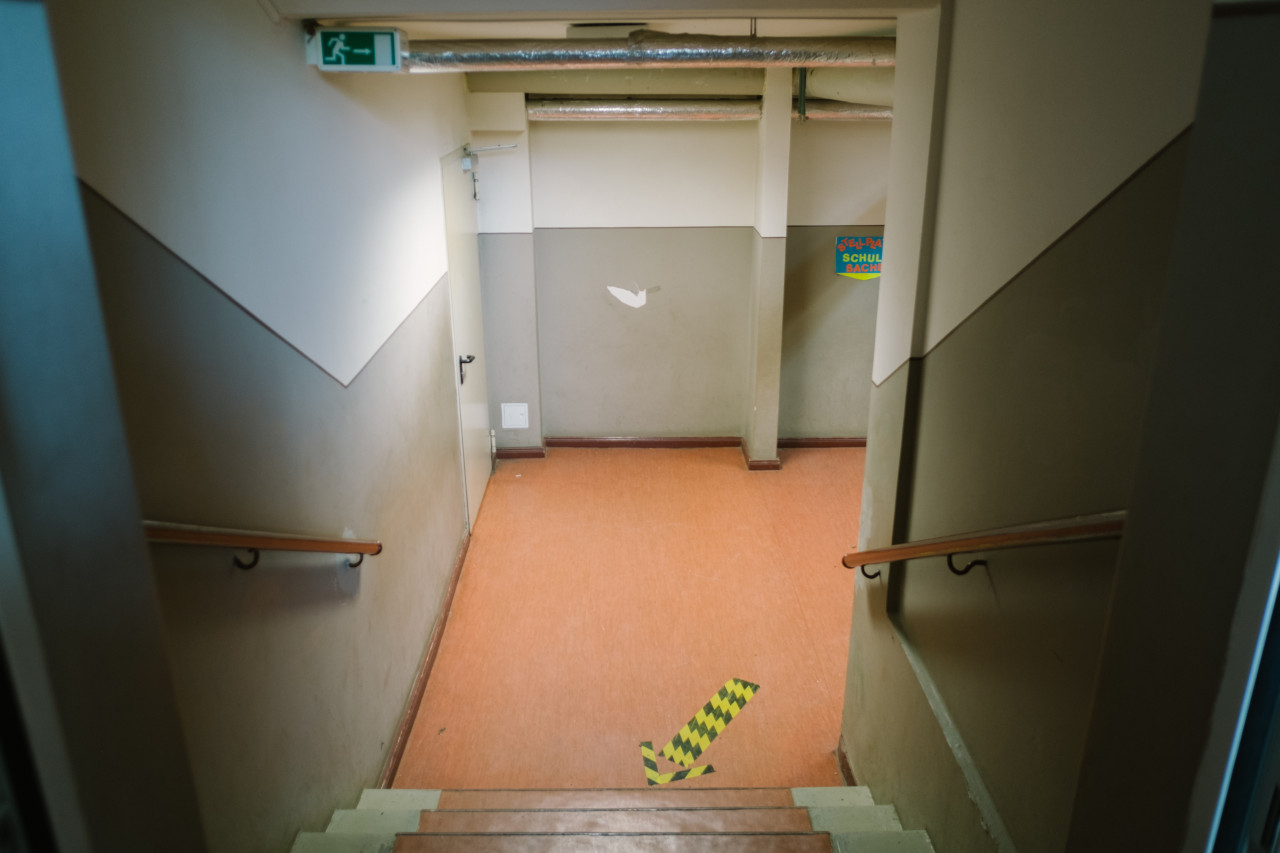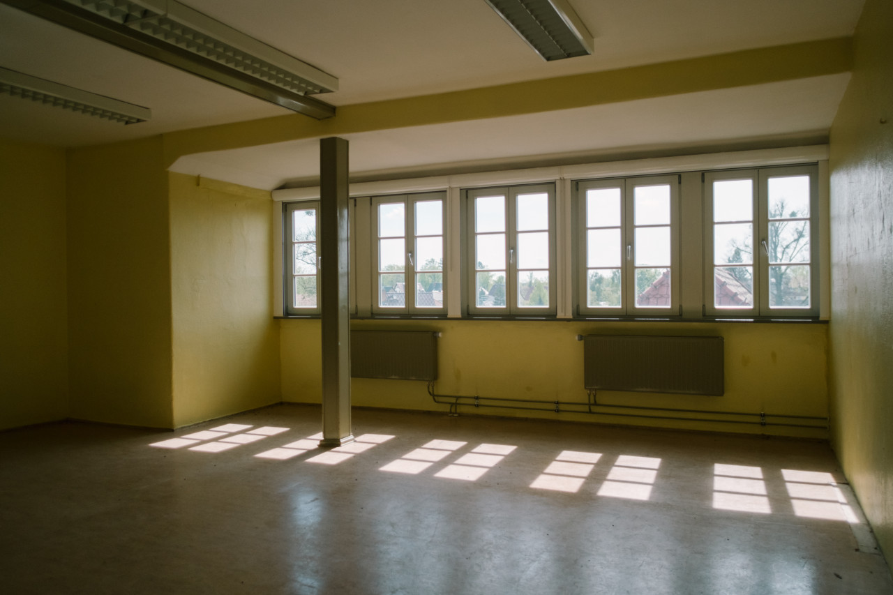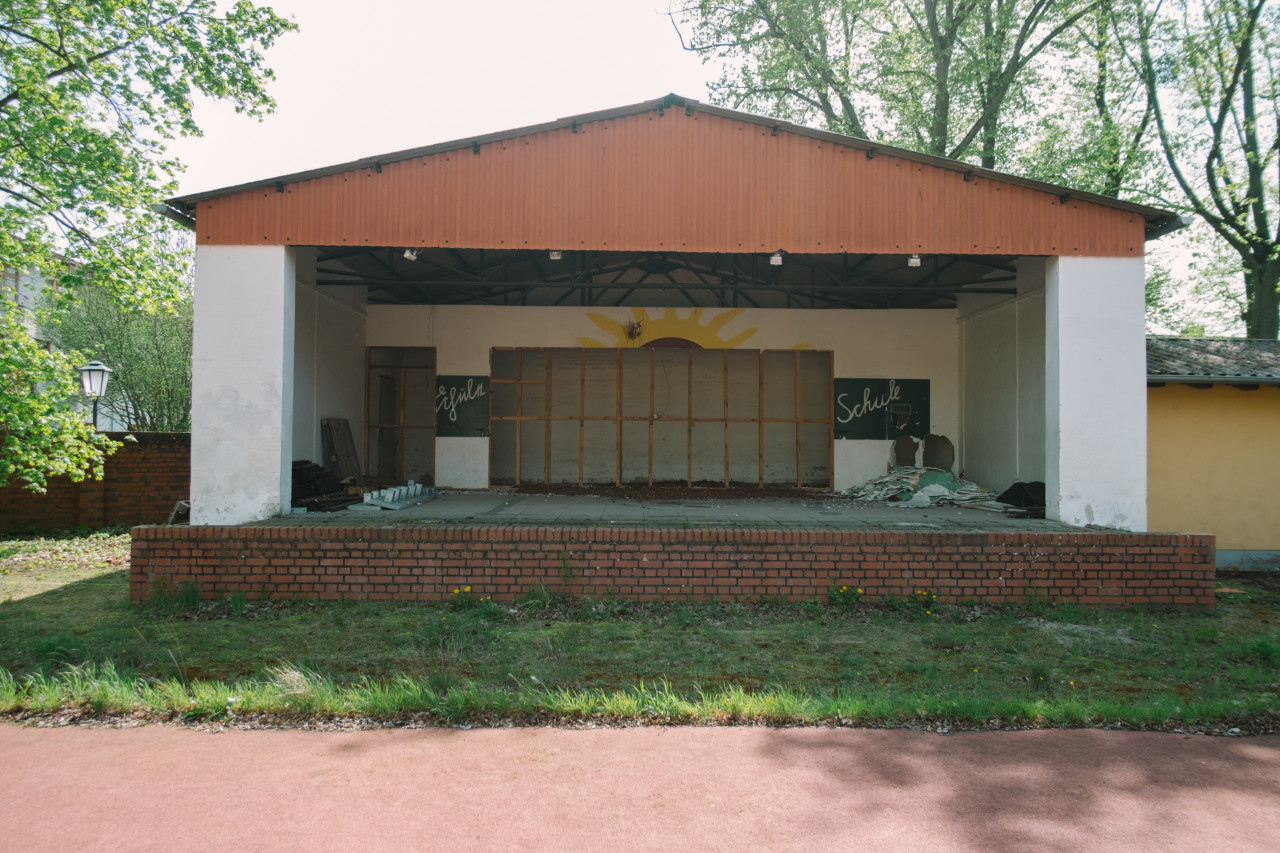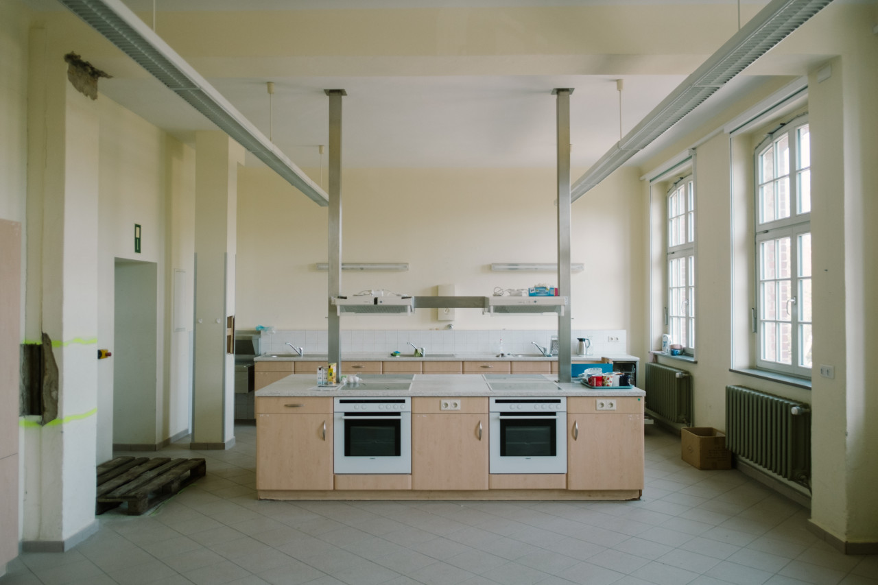 This historic school designed by Georg Dinklage in 1909 has transitioned from educational use to a space for cultural events, coworking, and living. The building features a brick facade, four floors with 29 rooms, and an extension housing a sports hall with a green-painted gabled roof. The grounds include a spacious yard with a stage and a garden area. Available for events and shoots, it will undergo construction starting in 2025.