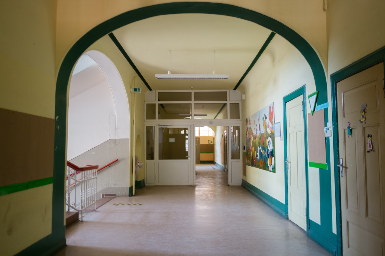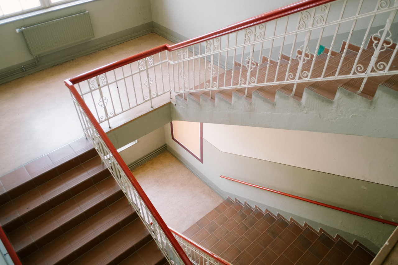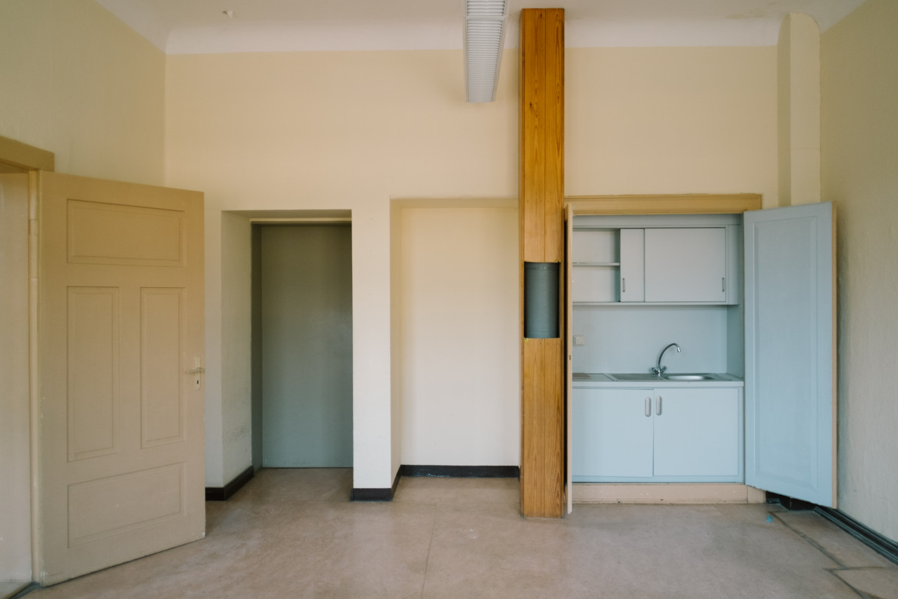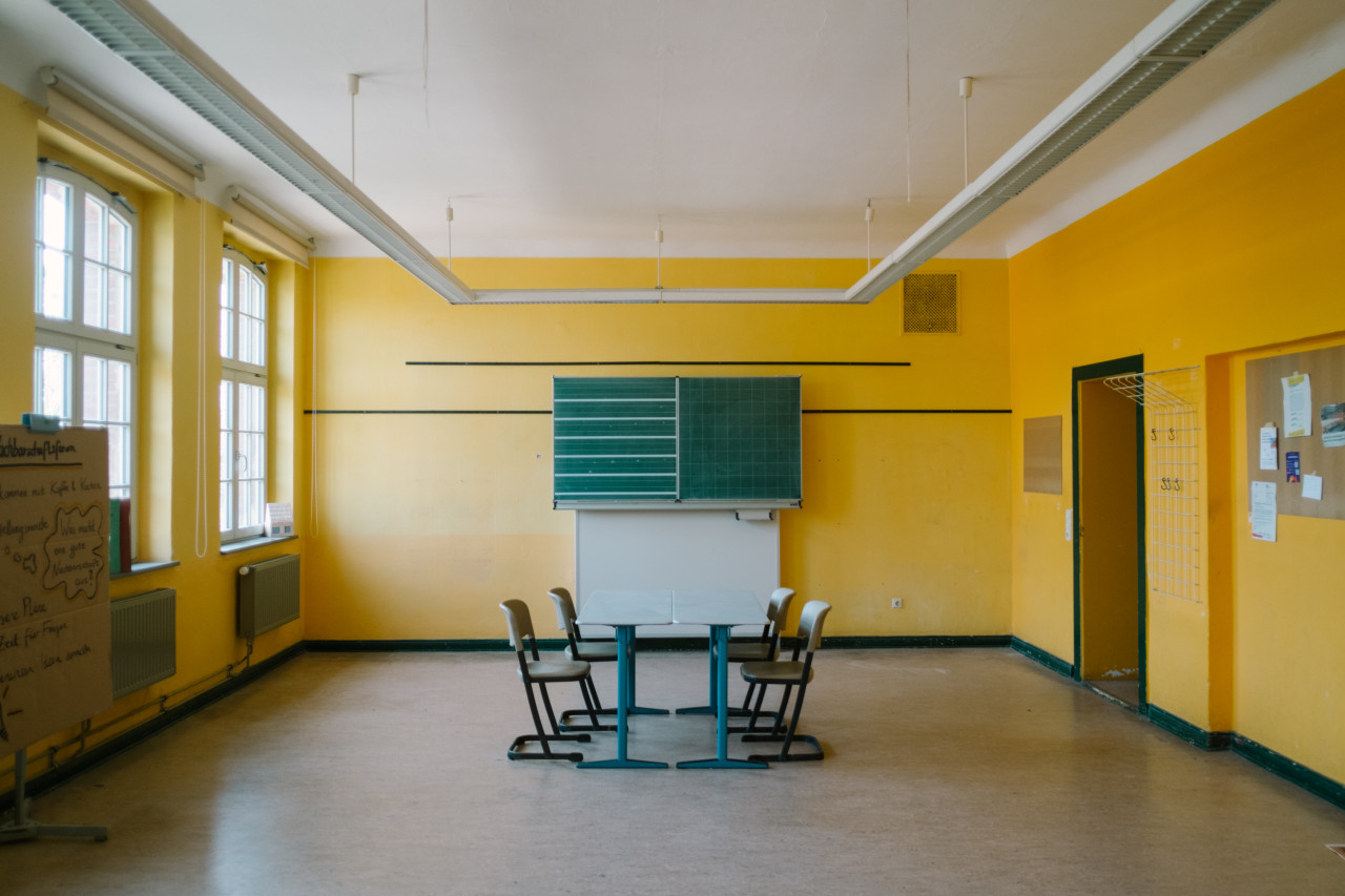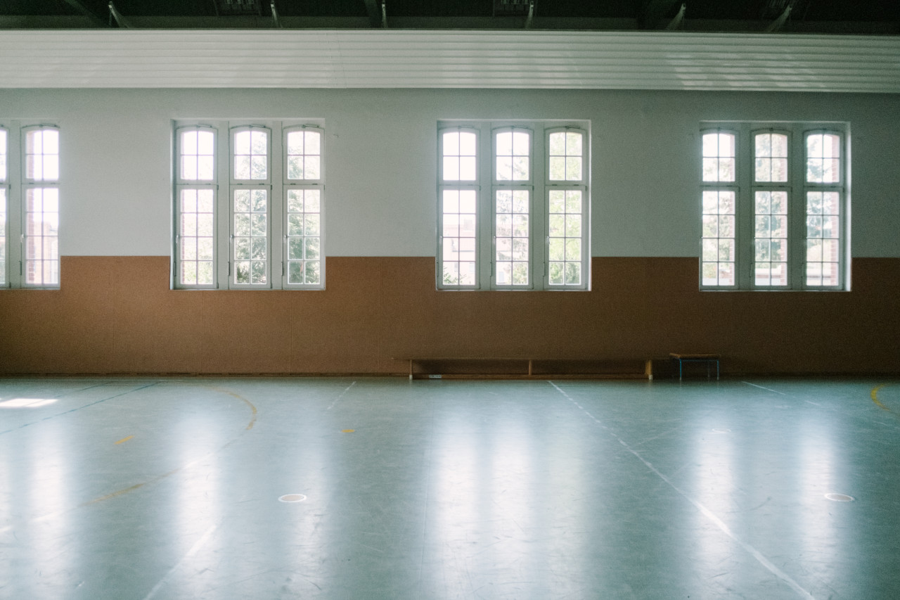 This historic school designed by Georg Dinklage in 1909 has transitioned from educational use to a space for cultural events, coworking, and living. The building features a brick facade, four floors with 29 rooms, and an extension housing a sports hall with a green-painted gabled roof. The grounds include a spacious yard with a stage and a garden area. Available for events and shoots, it will undergo construction starting in 2025.